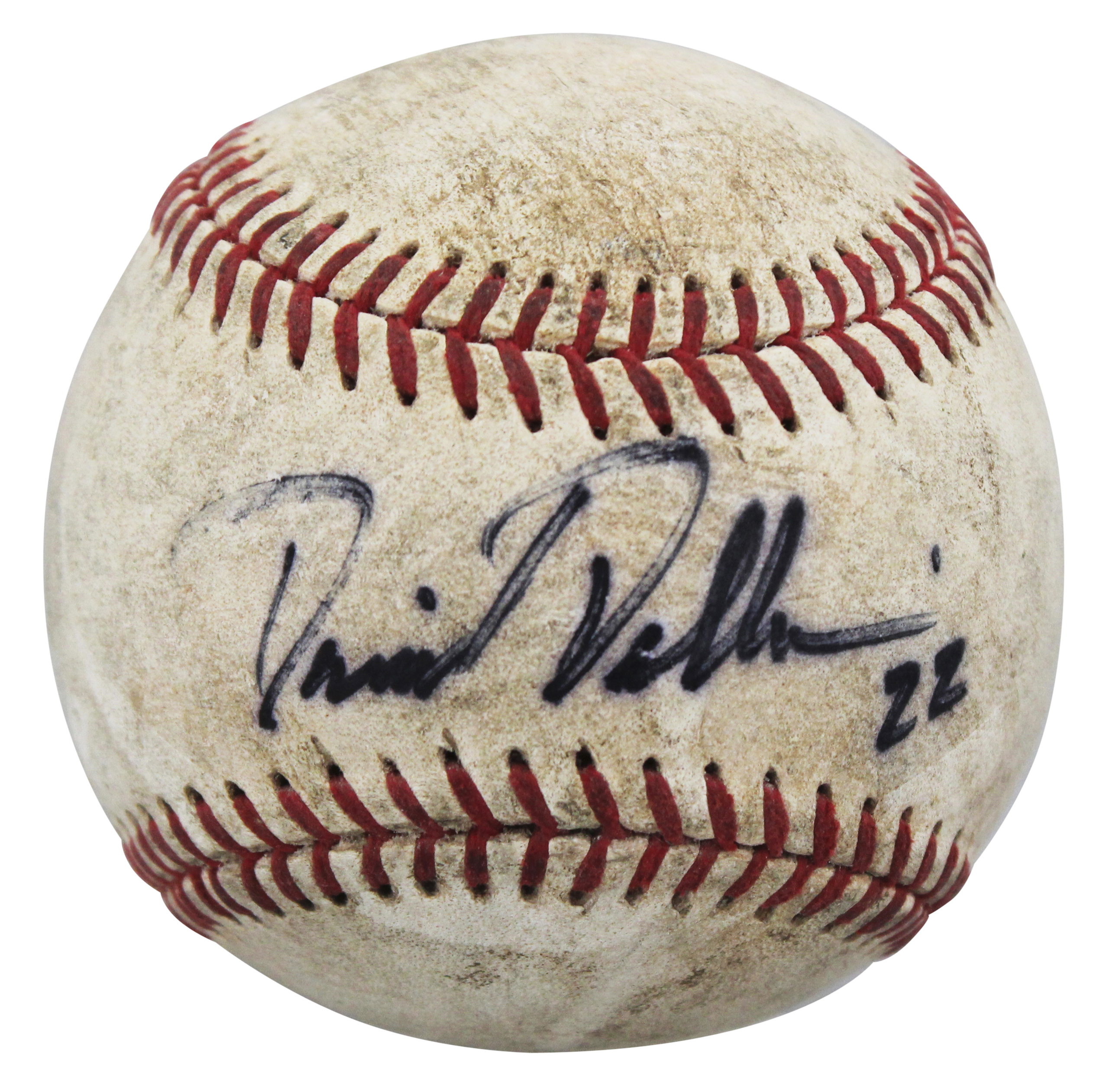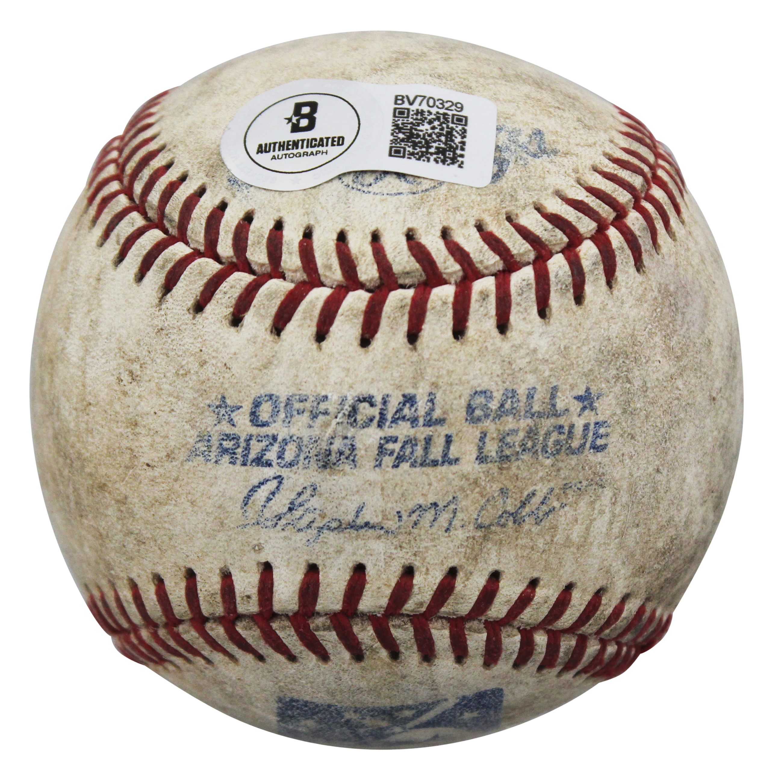 This Autographed Game Used Steve Cobb Arizona Fall League Baseball has been Personally Signed by David Dellucci of the Arizona Diamondbacks. This item is 100% Authentic to include a hologram by Beckett Authentication Services. This item will come with an affixed Beckett Authentication Services (BAS) authentication sticker, which includes a scannable QR code to verify authenticity. Please note that Beckett no longer provides serial-numbered COA cards, and the attached BAS sticker will serve as the complete authentication for this item. The authenticity can be verified on Beckett Authentication Services website. This baseball's game use is not authenticated, but it is consistent with known exemplars from this era of play.