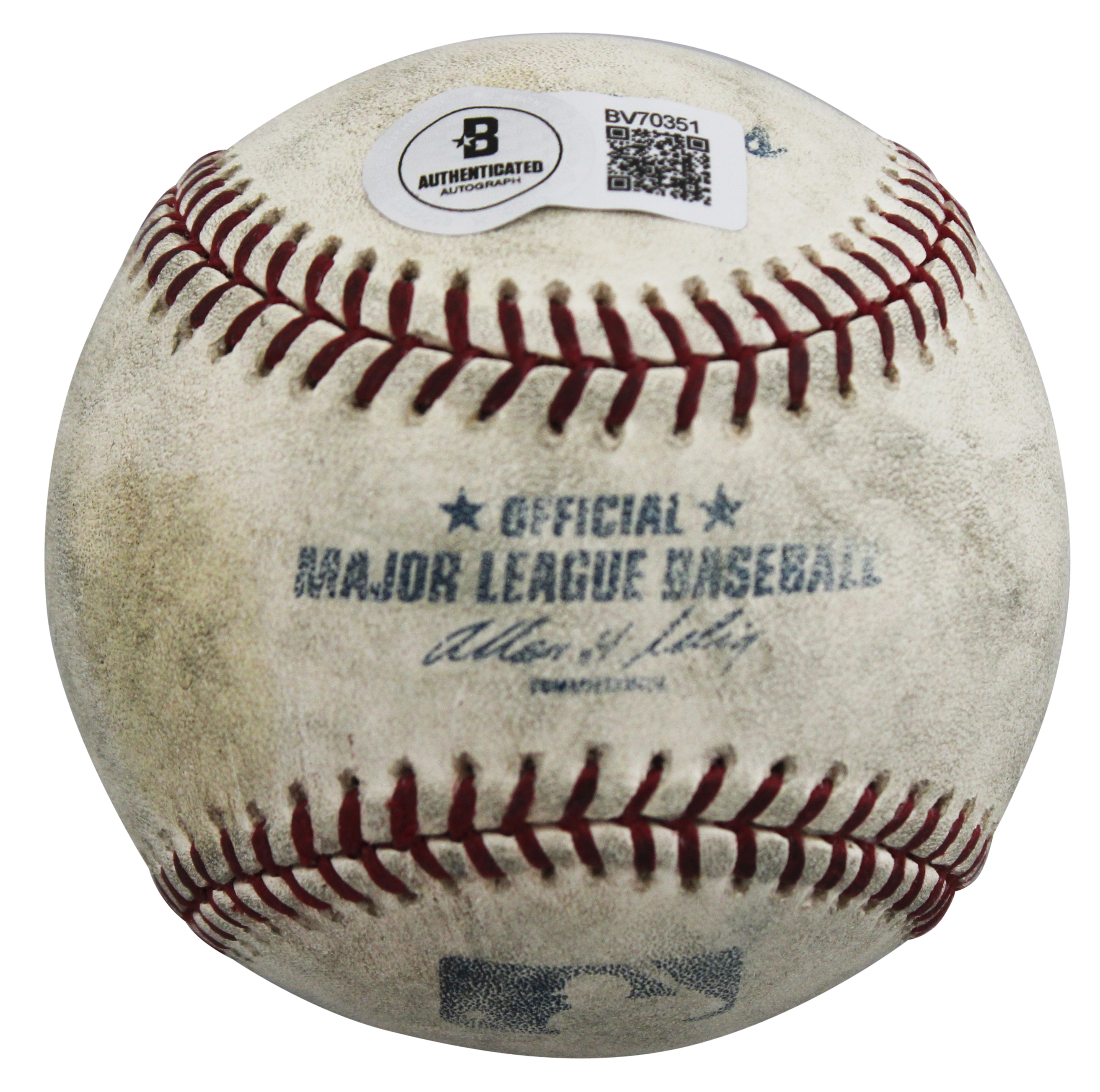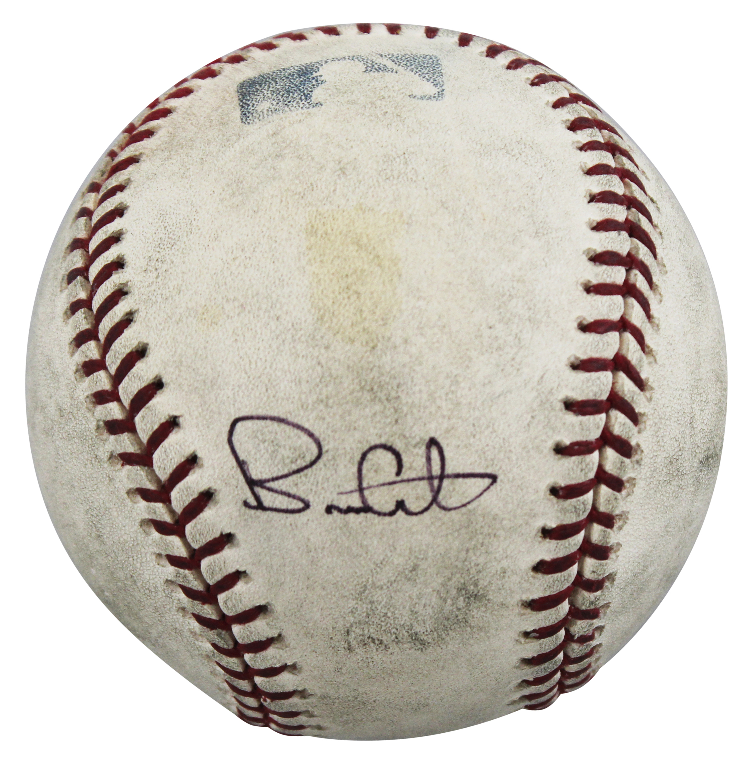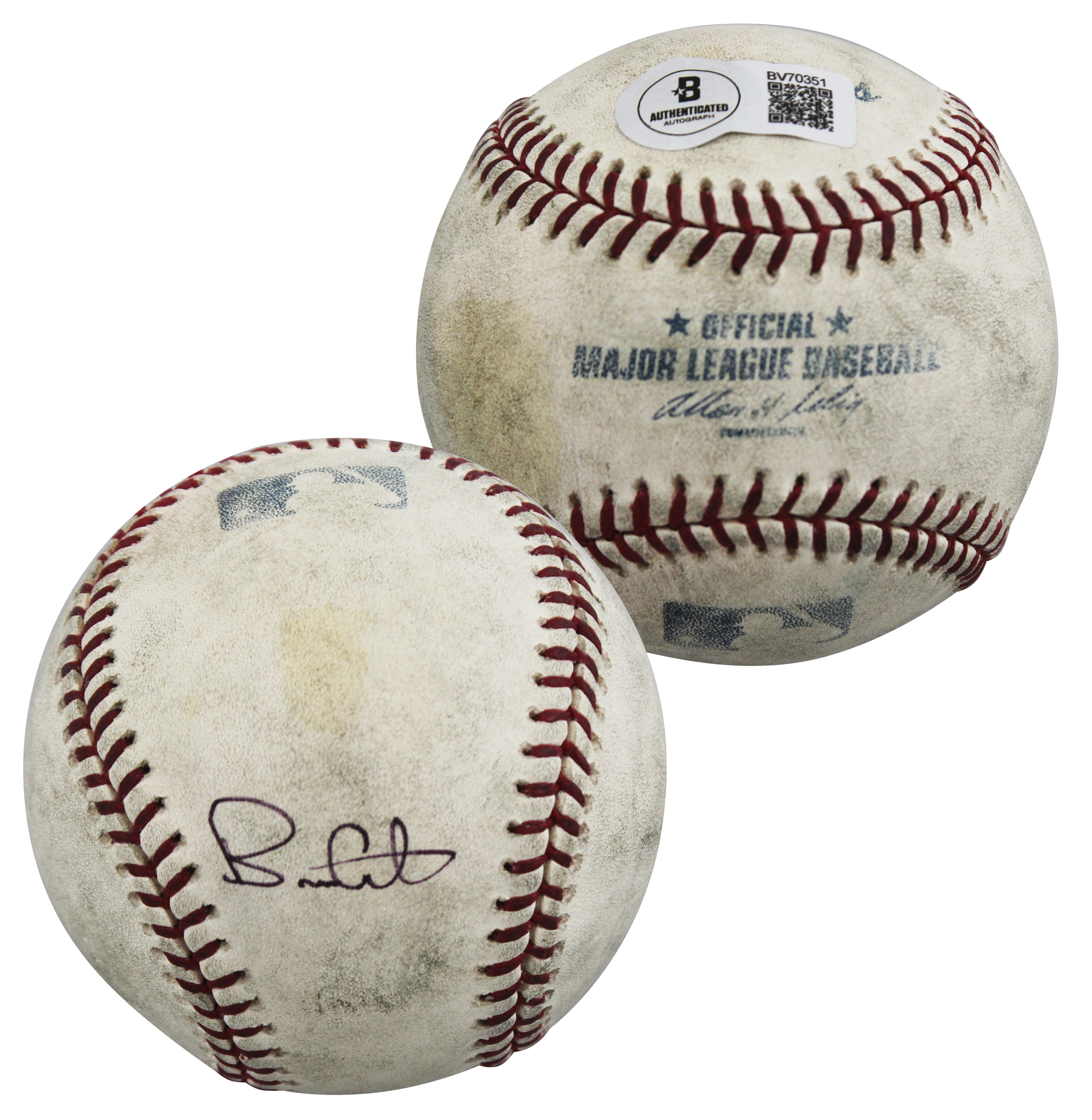 This Autographed Game Used Allen Selig Baseball has been Personally Signed by Brian Giles of the San Diego Padres. This item is 100% Authentic to include a hologram by Beckett Authentication Services. This item will come with an affixed Beckett Authentication Services (BAS) authentication sticker, which includes a scannable QR code to verify authenticity. Please note that Beckett no longer provides serial-numbered COA cards, and the attached BAS sticker will serve as the complete authentication for this item. The authenticity can be verified on Beckett Authentication Services website. This baseball's game use is not authenticated, but it is consistent with known exemplars from this era of play.