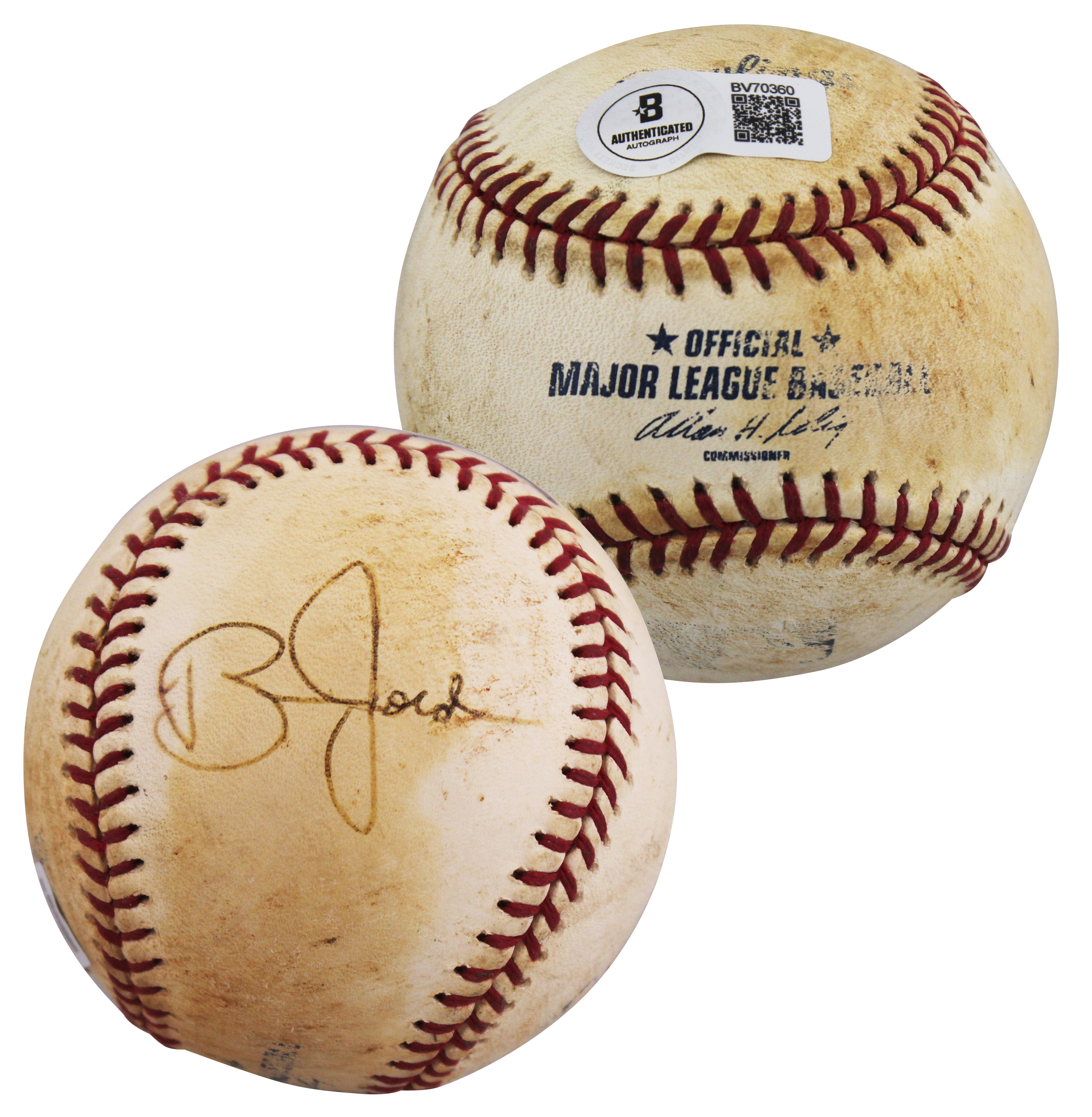 This Autographed Allen Selig Baseball has been Personally Signed by Brian Jordan of the St. Louis Cardinals. This item is 100% Authentic to include a hologram by Beckett Authentication Services. This item will come with an affixed Beckett Authentication Services (BAS) authentication sticker, which includes a scannable QR code to verify authenticity. Please note that Beckett no longer provides serial-numbered COA cards, and the attached BAS sticker will serve as the complete authentication for this item. The authenticity can be verified on Beckett Authentication Services website.