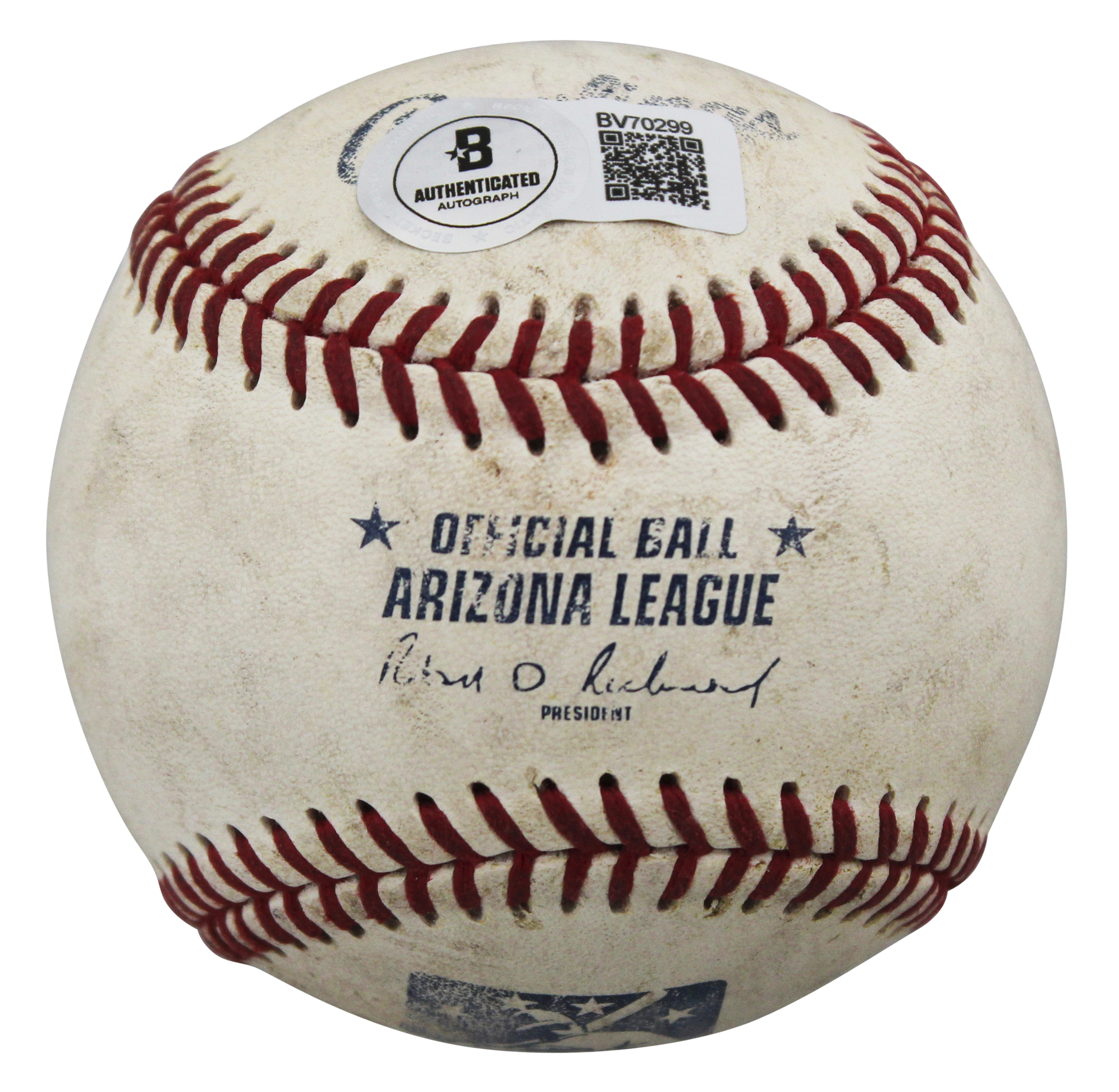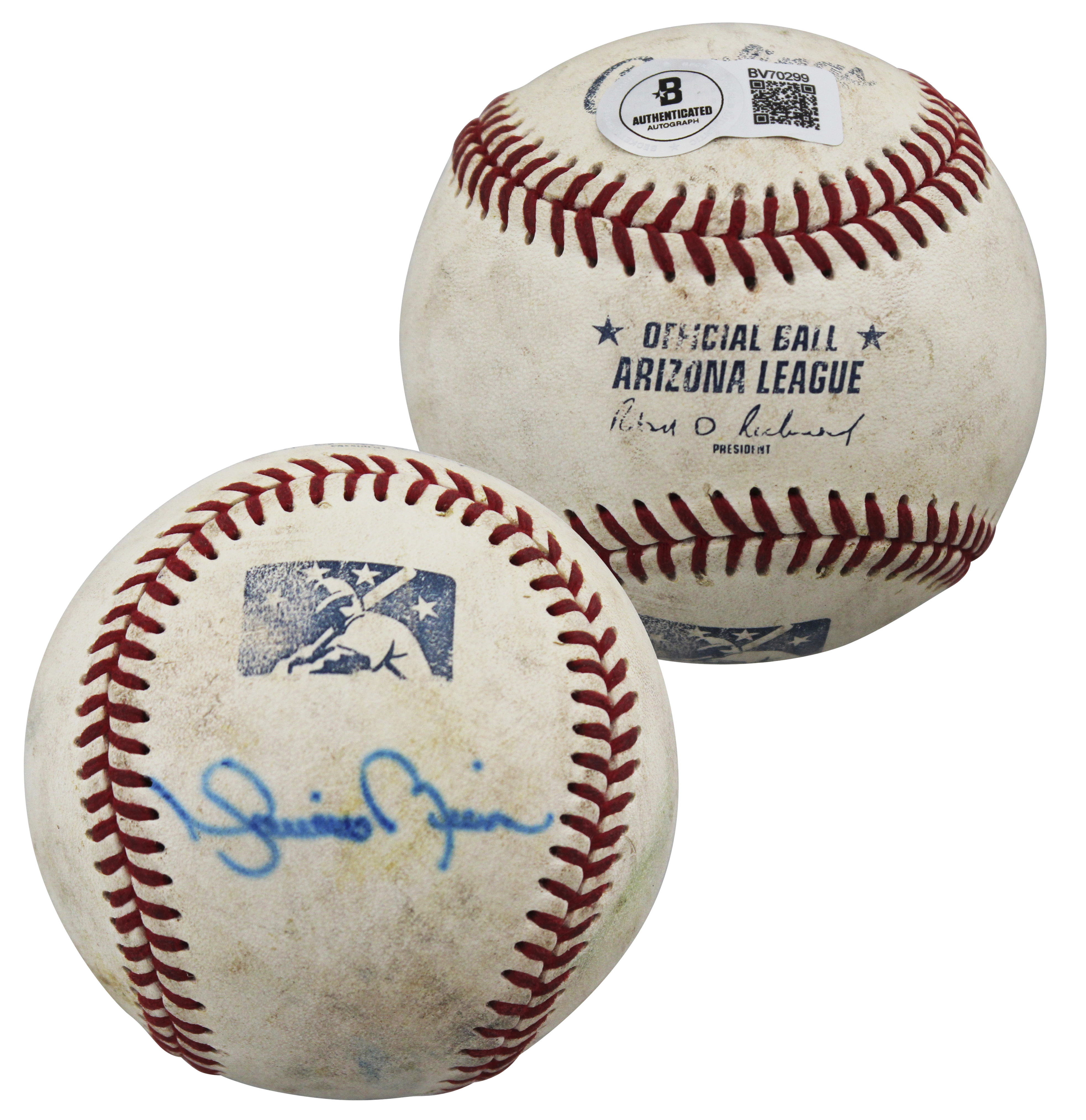 This Autographed Game Used Arizona League Baseball has been Personally Signed by Mariano Rivera of the New York Yankees. This item is 100% Authentic to include a hologram by Beckett Authentication Services. This item will come with an affixed Beckett Authentication Services (BAS) authentication sticker, which includes a scannable QR code to verify authenticity. Please note that Beckett no longer provides serial-numbered COA cards, and the attached BAS sticker will serve as the complete authentication for this item. The authenticity can be verified on Beckett Authentication Services website. This baseball's game use is not authenticated, but it is consistent with known exemplars from this era of play.