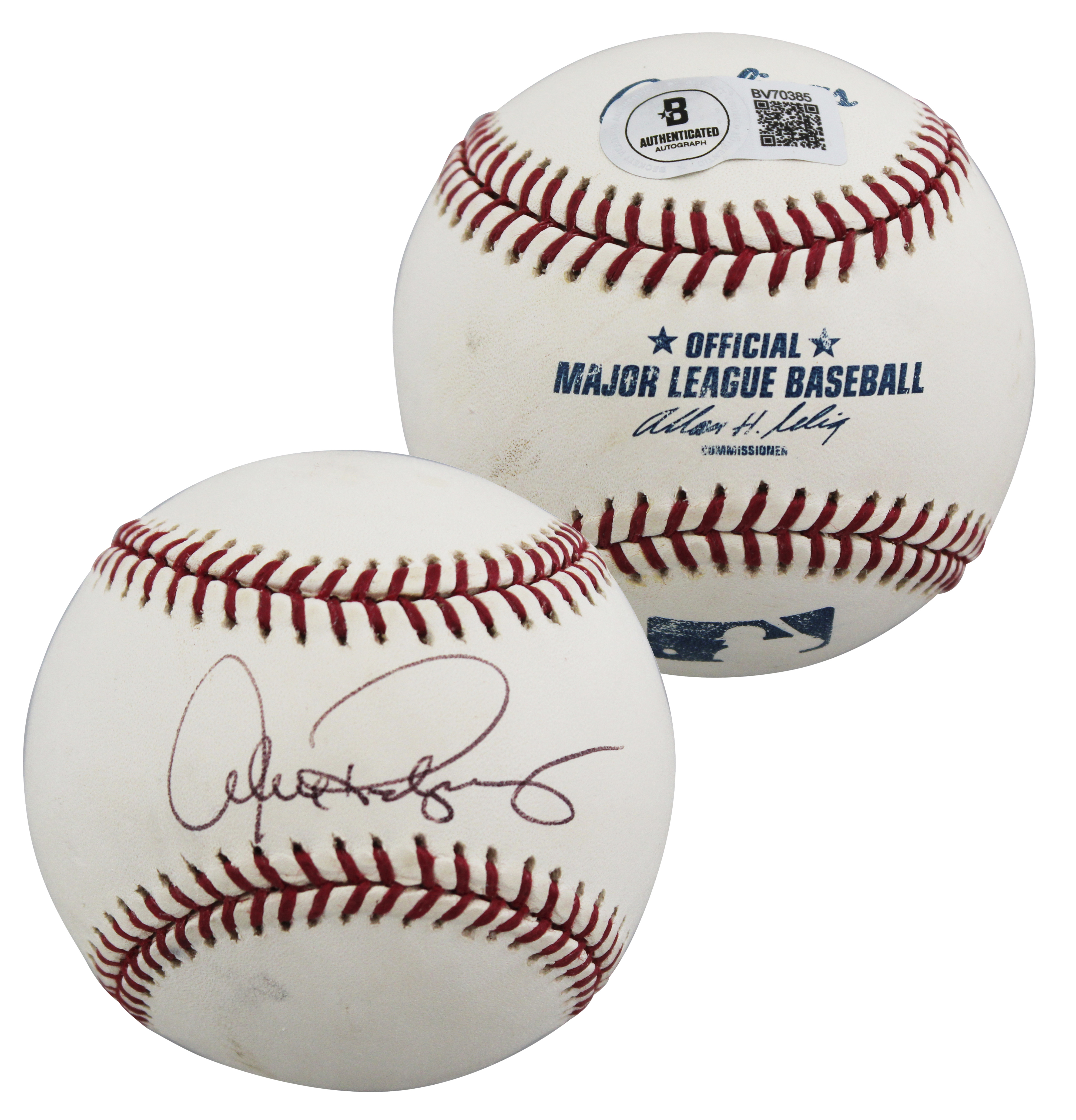 This Autographed Allen Selig Baseball has been Personally Signed by Alex Rodriguez of the New York Yankees. This item is 100% Authentic to include a hologram by Beckett Authentication Services. This item will come with an affixed Beckett Authentication Services (BAS) authentication sticker, which includes a scannable QR code to verify authenticity. Please note that Beckett no longer provides serial-numbered COA cards, and the attached BAS sticker will serve as the complete authentication for this item. The authenticity can be verified on Beckett Authentication Services website.