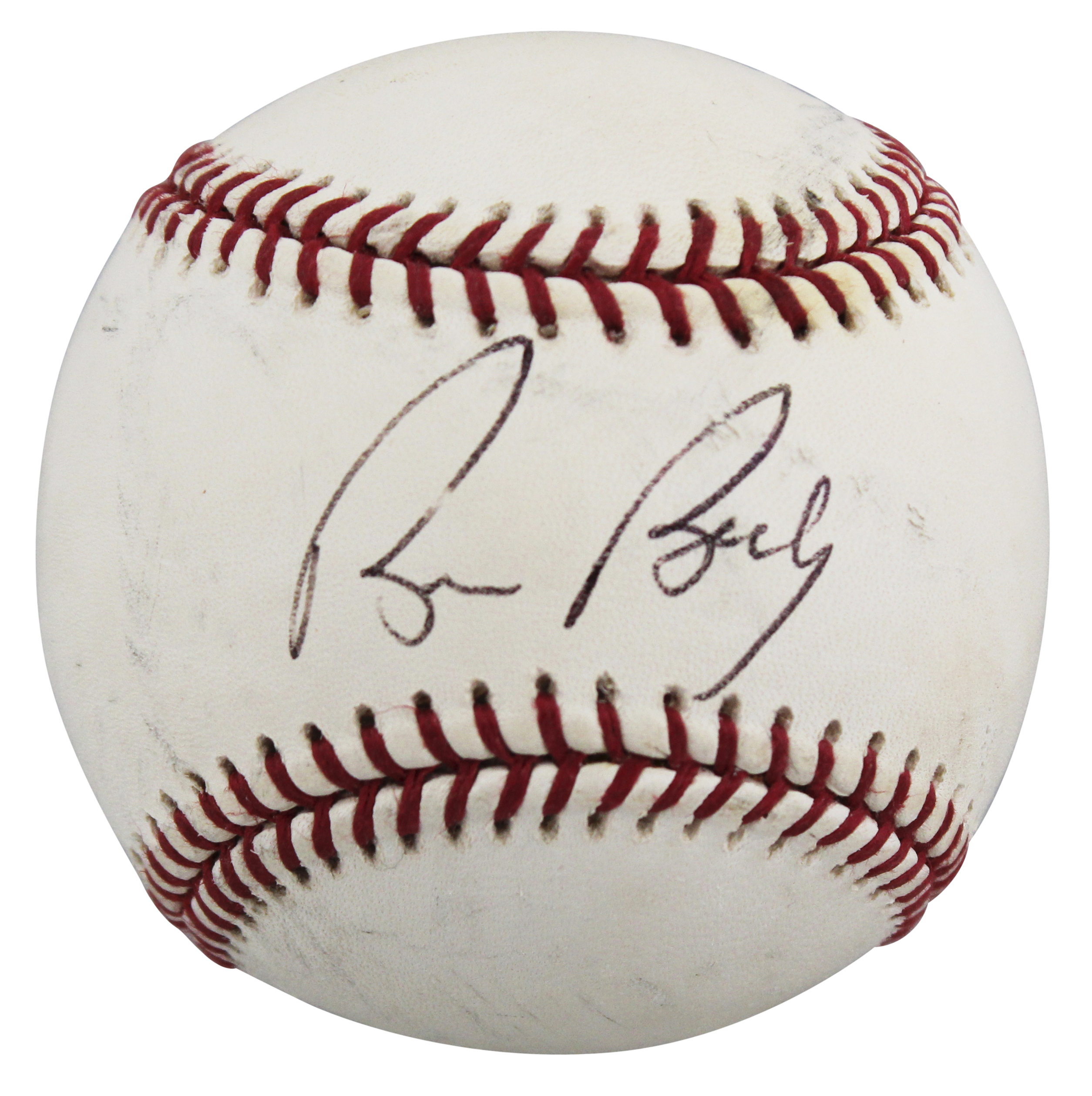 This Autographed Allen Selig Baseball has been Personally Signed by Bruce Bochy of the Texas Rangers. This item is 100% Authentic to include a hologram by Beckett Authentication Services. This item will come with an affixed Beckett Authentication Services (BAS) authentication sticker, which includes a scannable QR code to verify authenticity. Please note that Beckett no longer provides serial-numbered COA cards, and the attached BAS sticker will serve as the complete authentication for this item. The authenticity can be verified on Beckett Authentication Services website.