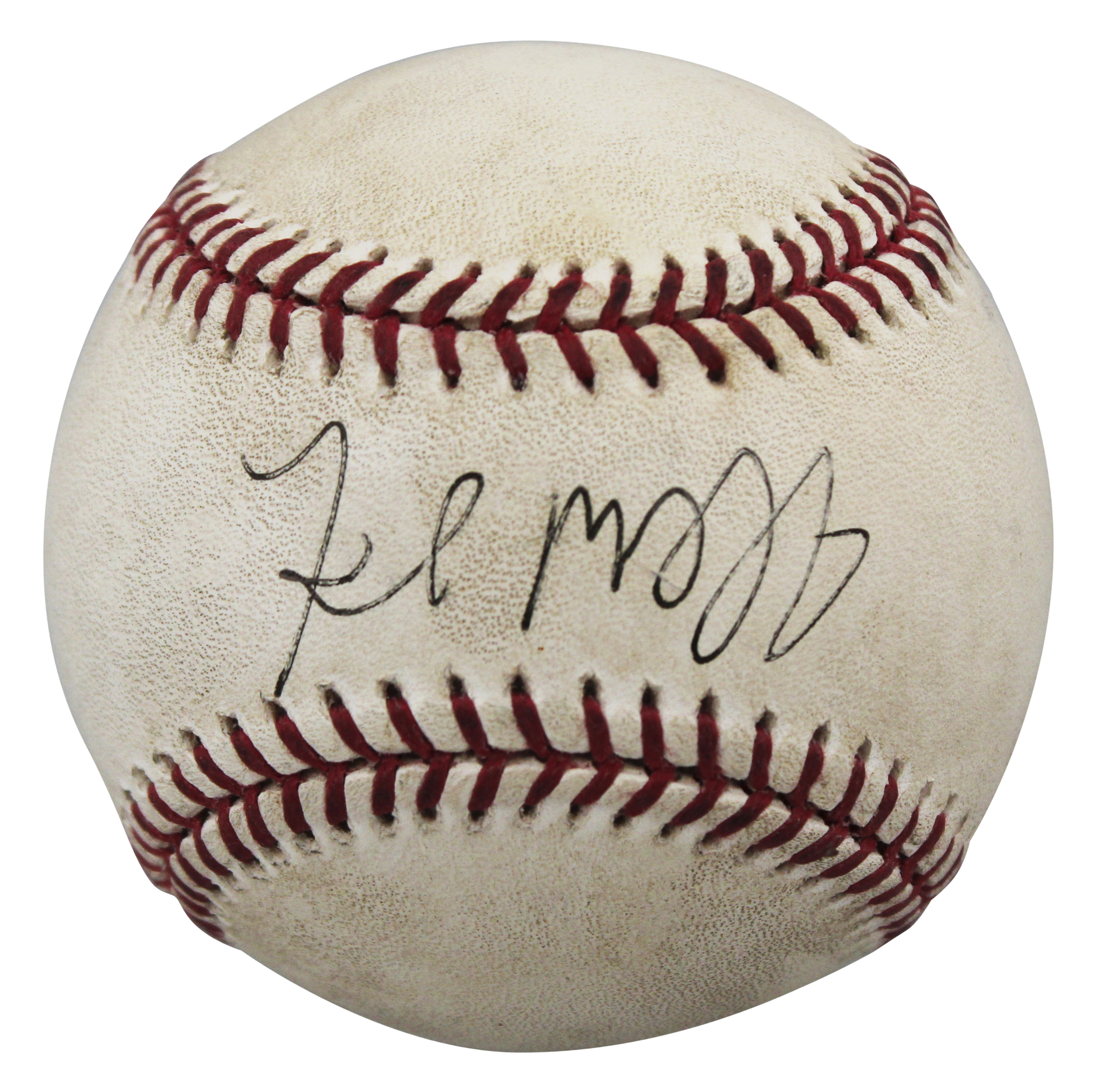 This Autographed Game Used Allen Sellig Baseball has been Personally Signed by Fred McGriff of the Tampa Bay Rays. This item is 100% Authentic to include a hologram by Beckett Authentication Services. This item will come with an affixed Beckett Authentication Services (BAS) authentication sticker, which includes a scannable QR code to verify authenticity. Please note that Beckett no longer provides serial-numbered COA cards, and the attached BAS sticker will serve as the complete authentication for this item. The authenticity can be verified on Beckett Authentication Services website. This baseball's game use is not authenticated, but it is consistent with known exemplars from this era of play.