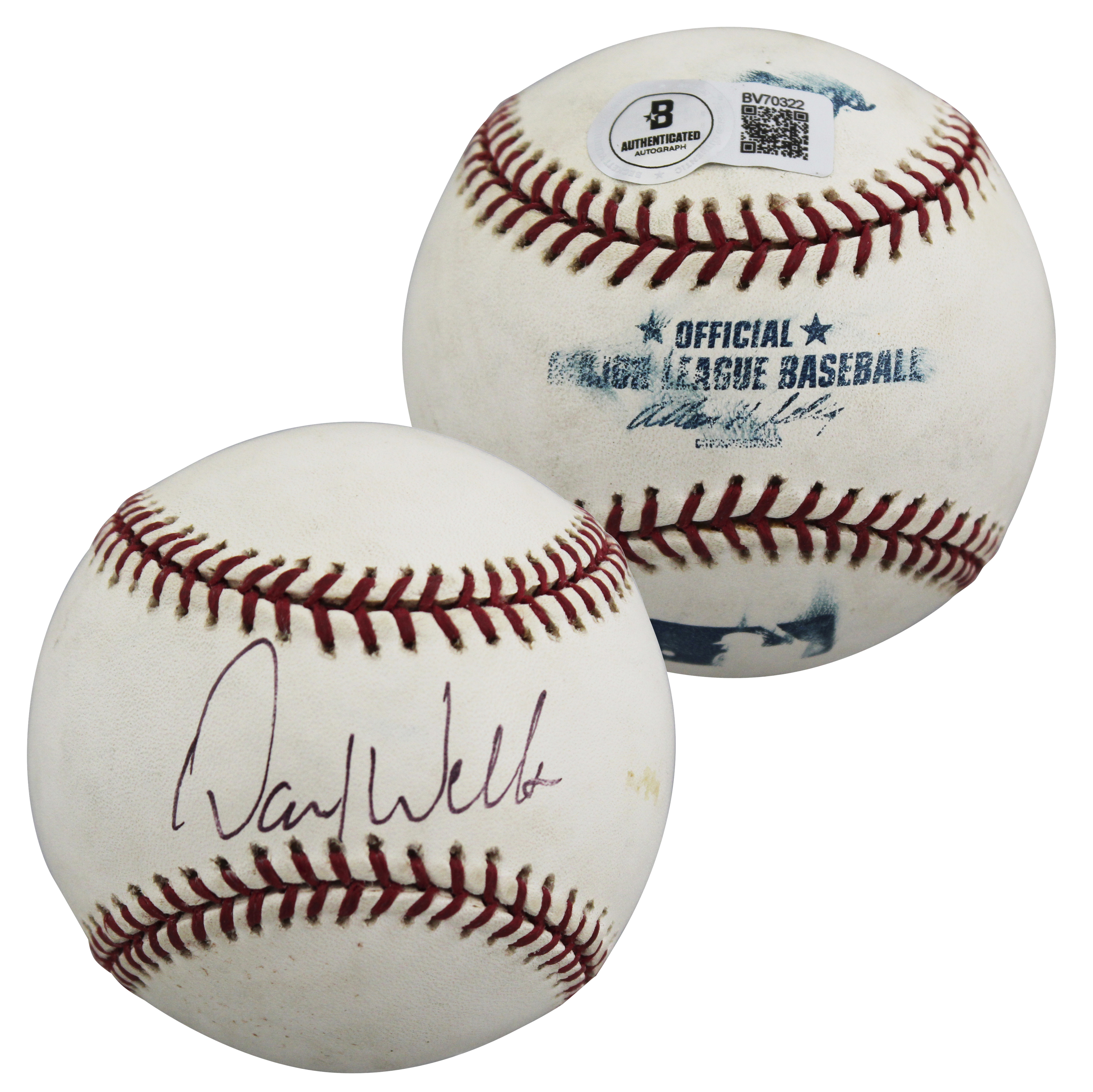 This Autographed Allen Selig Baseball has been Personally Signed by David Wells of the Toronto Blue Jays. This item is 100% Authentic to include a hologram by Beckett Authentication Services. This item will come with an affixed Beckett Authentication Services (BAS) authentication sticker, which includes a scannable QR code to verify authenticity. Please note that Beckett no longer provides serial-numbered COA cards, and the attached BAS sticker will serve as the complete authentication for this item. The authenticity can be verified on Beckett Authentication Services website.