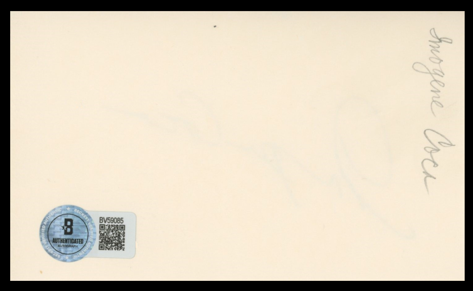 This Autographed 3x5 Index Card has been Personally Signed by Imogene Coca of National Lampoon's Vacation. This item is 100% Authentic to include a hologram by Beckett Authentication Services. This item will come with an affixed Beckett Authentication Services (BAS) authentication sticker, which includes a scannable QR code to verify authenticity. Please note that Beckett no longer provides serial-numbered COA cards, and the attached BAS sticker will serve as the complete authentication for this item. The authenticity can be verified on Beckett Authentication Services website.