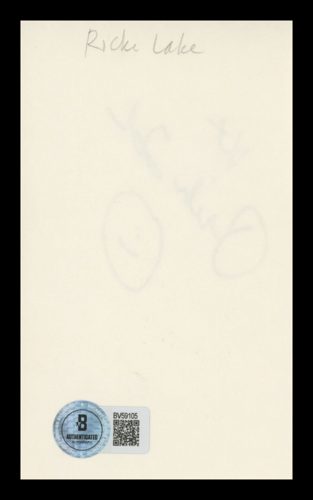 This Autographed 3x5 Index Card has been Personally Signed by Ricki Lake of Hairspray. This item is 100% Authentic to include a hologram by Beckett Authentication Services. This item will come with an affixed Beckett Authentication Services (BAS) authentication sticker, which includes a scannable QR code to verify authenticity. Please note that Beckett no longer provides serial-numbered COA cards, and the attached BAS sticker will serve as the complete authentication for this item. The authenticity can be verified on Beckett Authentication Services website.
