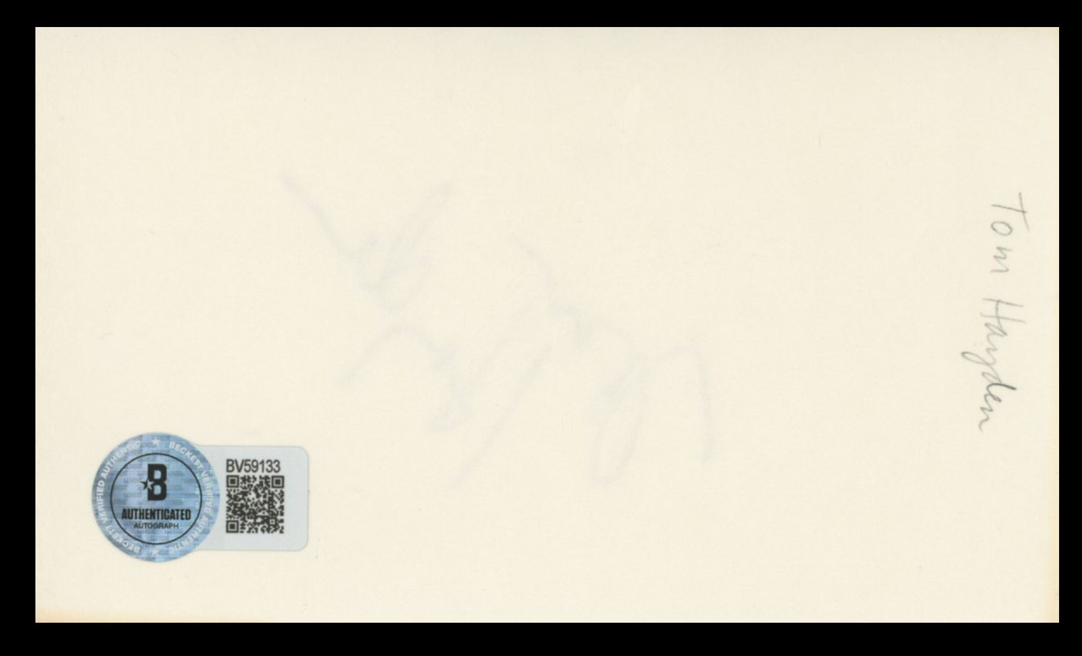 This Autographed 3x5 Index Card has been Personally Signed by Tom Hayden. This item is 100% Authentic to include a hologram by Beckett Authentication Services. This item will come with an affixed Beckett Authentication Services (BAS) authentication sticker, which includes a scannable QR code to verify authenticity. Please note that Beckett no longer provides serial-numbered COA cards, and the attached BAS sticker will serve as the complete authentication for this item. The authenticity can be verified on Beckett Authentication Services website.
