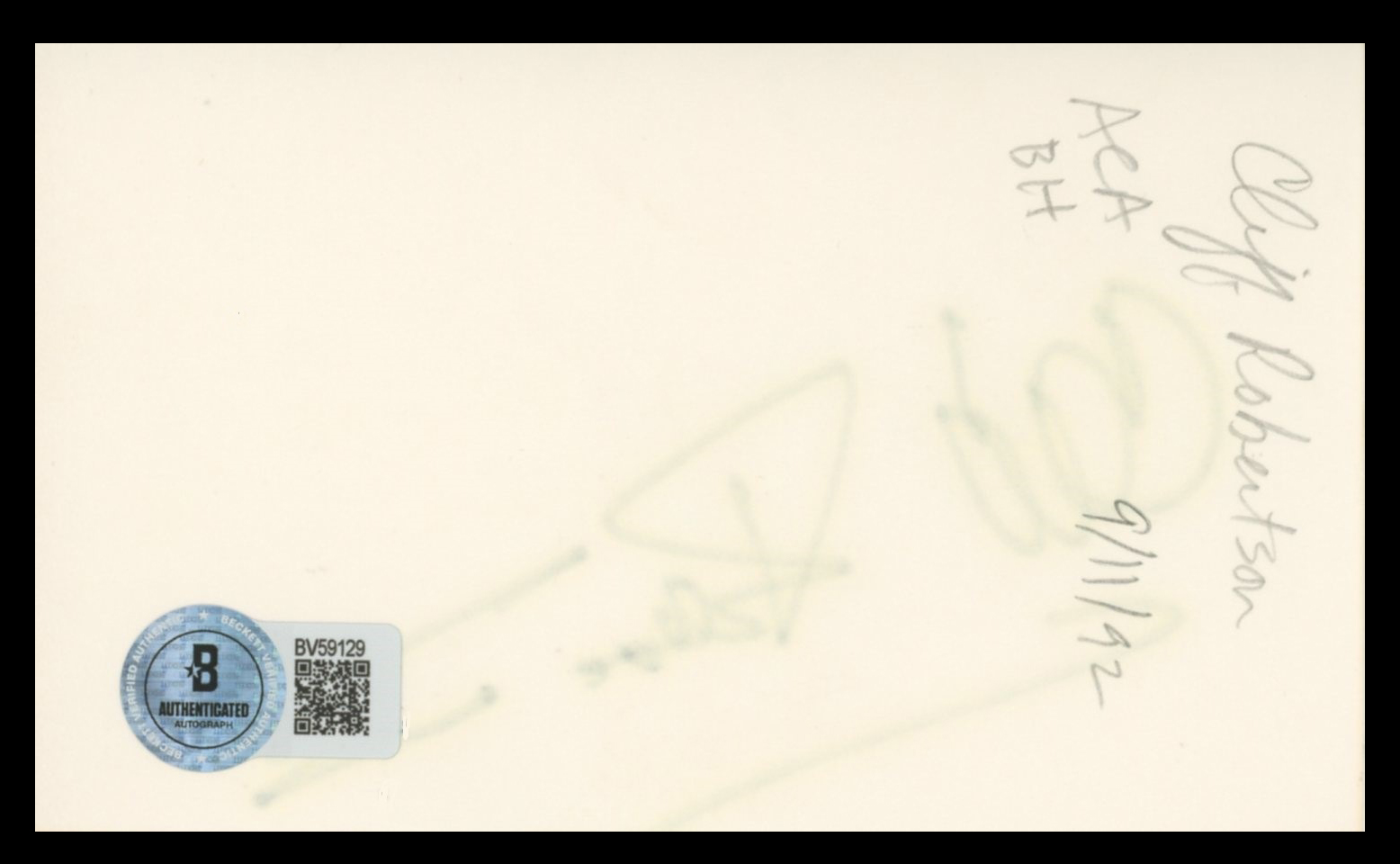 This Autographed 3x5 Index Card has been Personally Signed by Cliff Robertson of Charly. This item is 100% Authentic to include a hologram by Beckett Authentication Services. This item will come with an affixed Beckett Authentication Services (BAS) authentication sticker, which includes a scannable QR code to verify authenticity. Please note that Beckett no longer provides serial-numbered COA cards, and the attached BAS sticker will serve as the complete authentication for this item. The authenticity can be verified on Beckett Authentication Services website.