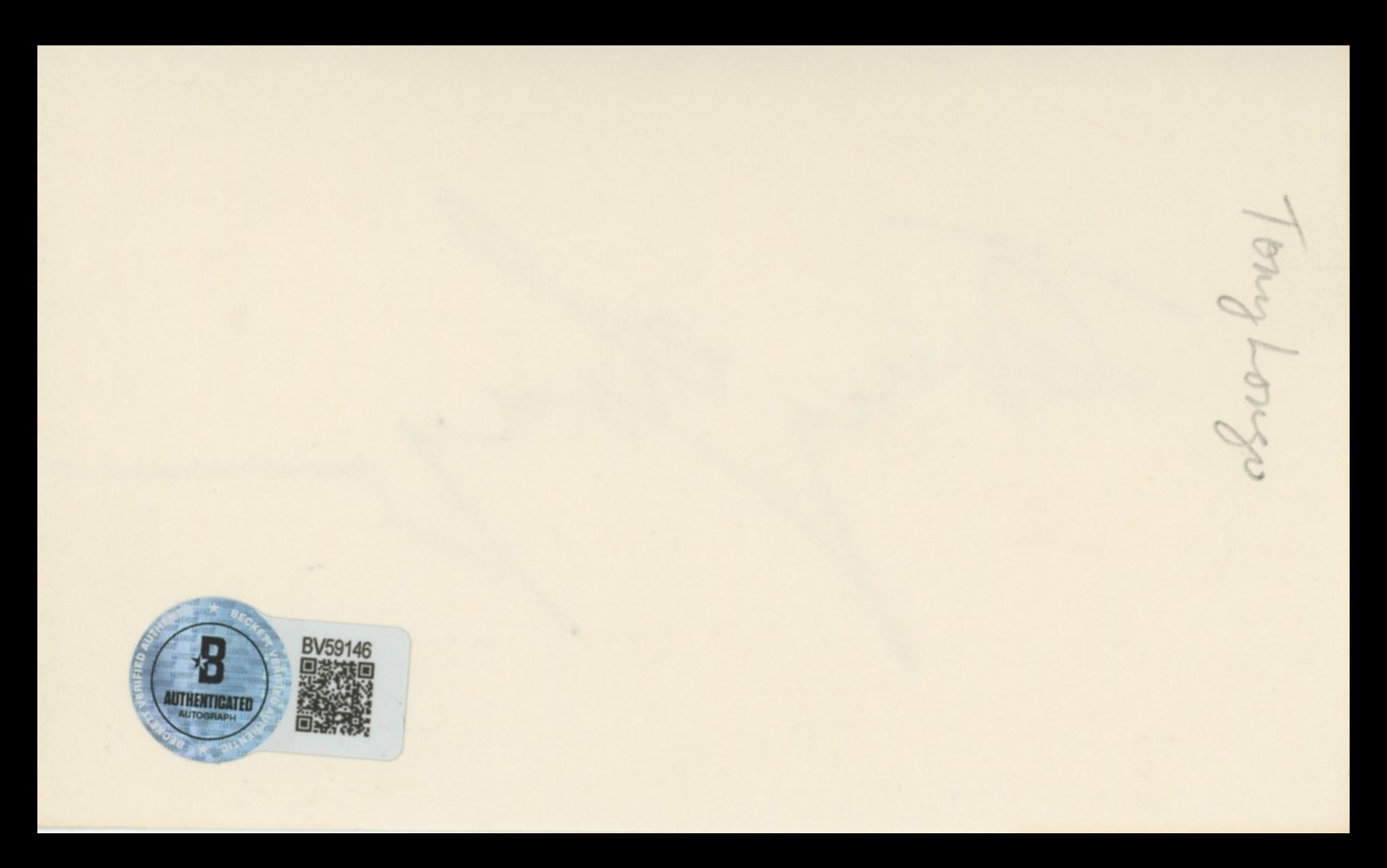 This Autographed 3x5 Index Card has been Personally Signed by Tony Longo of Mulholland Drive. This item is 100% Authentic to include a hologram by Beckett Authentication Services. This item will come with an affixed Beckett Authentication Services (BAS) authentication sticker, which includes a scannable QR code to verify authenticity. Please note that Beckett no longer provides serial-numbered COA cards, and the attached BAS sticker will serve as the complete authentication for this item. The authenticity can be verified on Beckett Authentication Services website.
