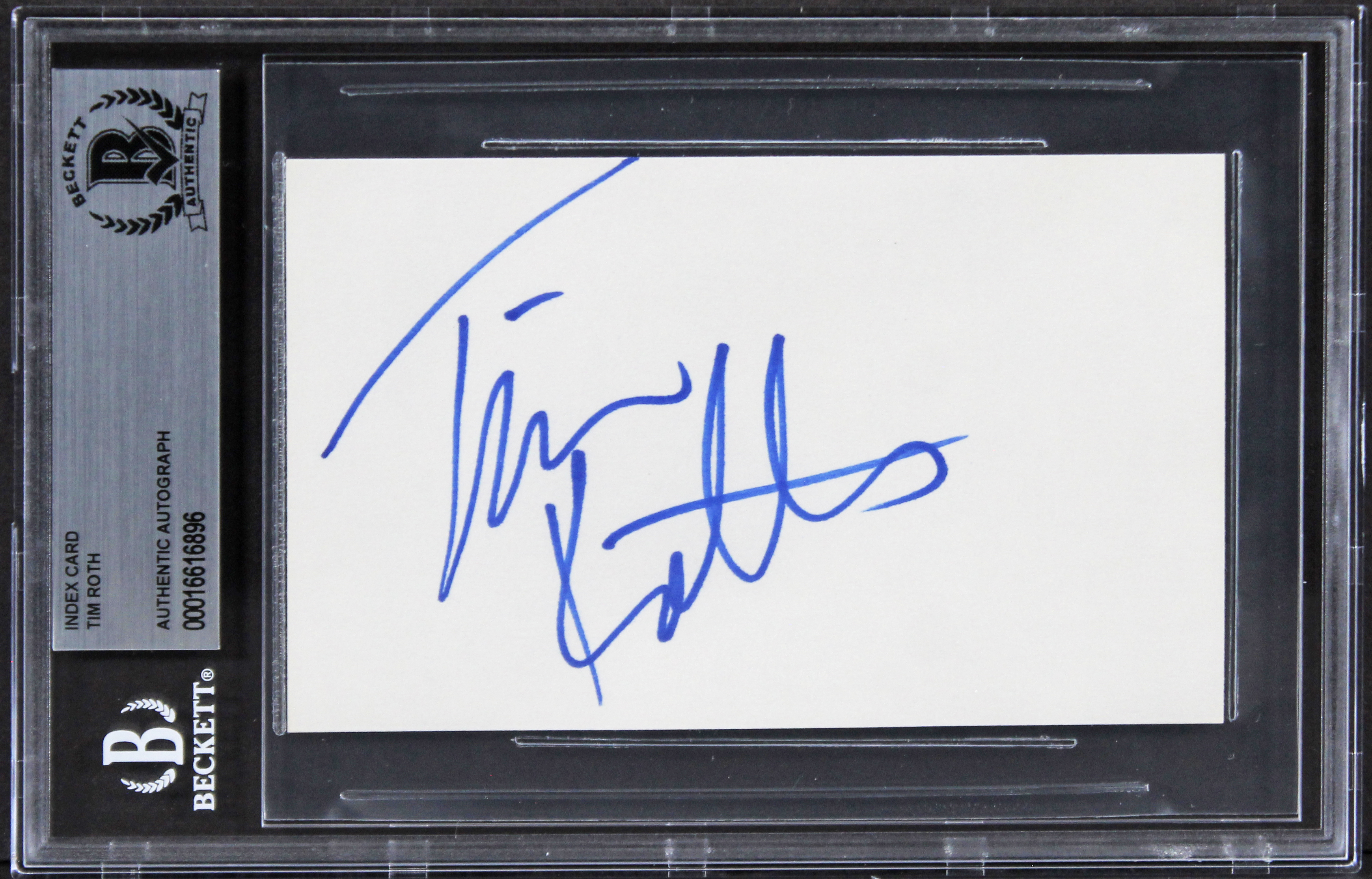 This Autographed 3x5 Index Card has been Personally Signed by Tim Roth of Reservoir Dogs. This item is 100% Authentic, it comes slabbed and authenticated by Beckett Authentication Services. The authenticity can be verified on Beckett Authentication Services website.