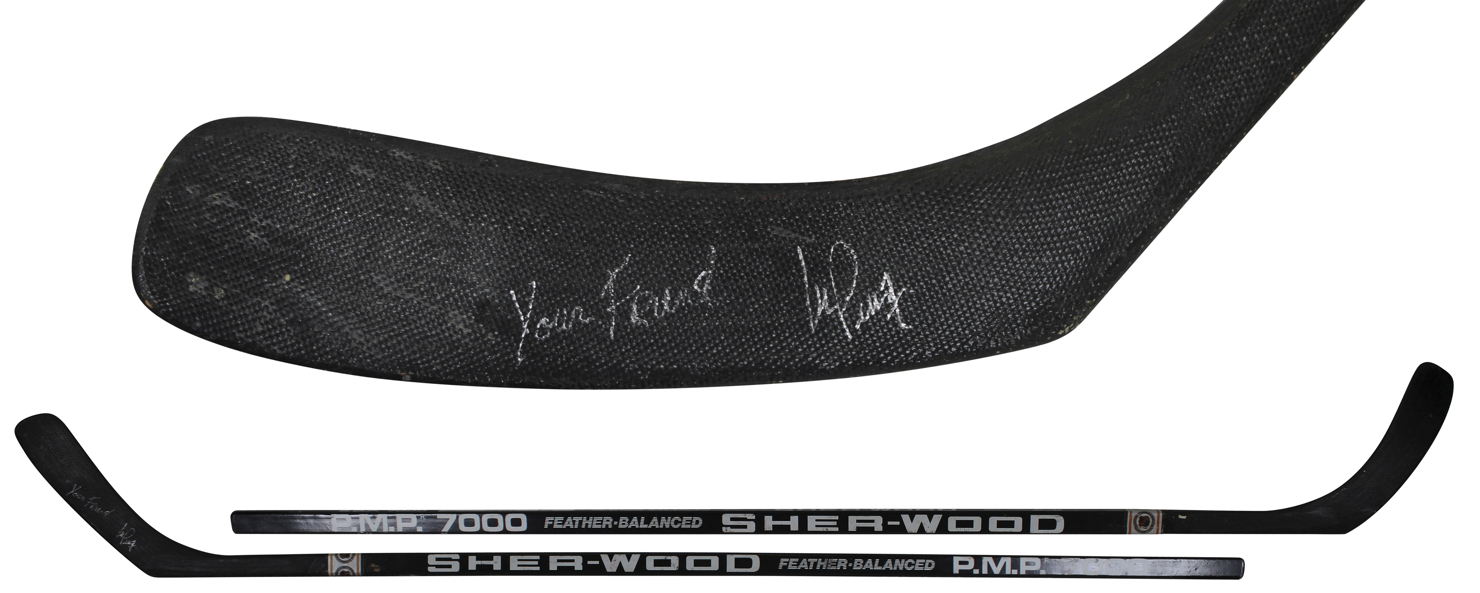 This Autographed Sherwood P.M.P. 7000 Hockey Stick with the inscription of "Your Friend" has been Personally Signed by Michel Petit of the Arizona Coyotes. This item is 100% Authentic to include a hologram by Beckett Authentication Services. This item will come with an affixed Beckett Authentication Services (BAS) authentication sticker, which includes a scannable QR code to verify authenticity. Please note that Beckett no longer provides serial-numbered COA cards, and the attached BAS sticker will serve as the complete authentication for this item. The authenticity can be verified on Beckett Authentication Services website. There has been a personalization removal from this hockey stick.