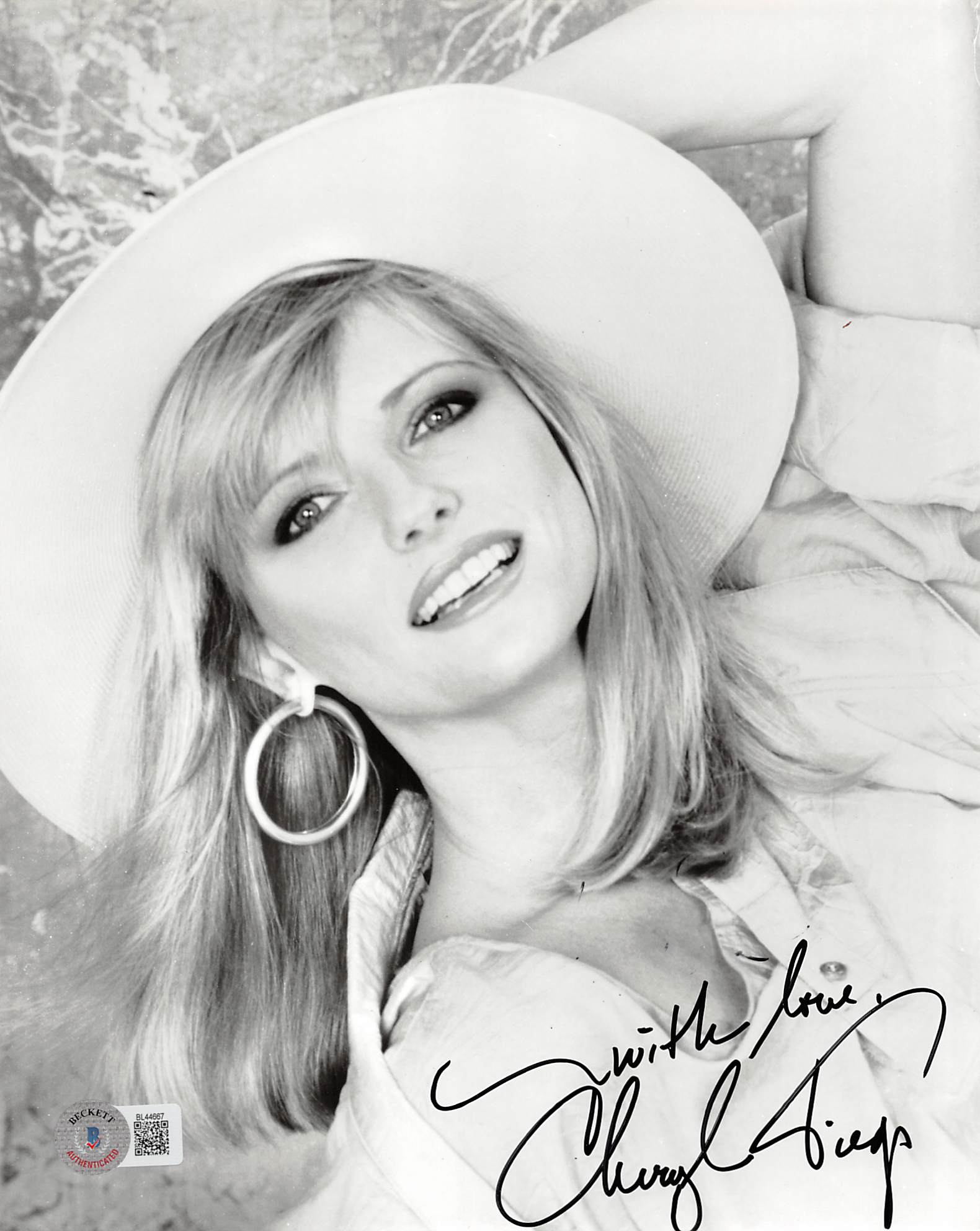 This Autographed 8x10 Photo with the inscription of "With Love," has been Personally Signed by Cheryl Tiegs of Sports Illustrated Swimsuit Model. This item is 100% Authentic to include a hologram by Beckett Authentication Services. This item will come with an affixed Beckett Authentication Services (BAS) authentication sticker, which includes a scannable QR code to verify authenticity. Please note that Beckett no longer provides serial-numbered COA cards, and the attached BAS sticker will serve as the complete authentication for this item. The authenticity can be verified on Beckett Authentication Services website.