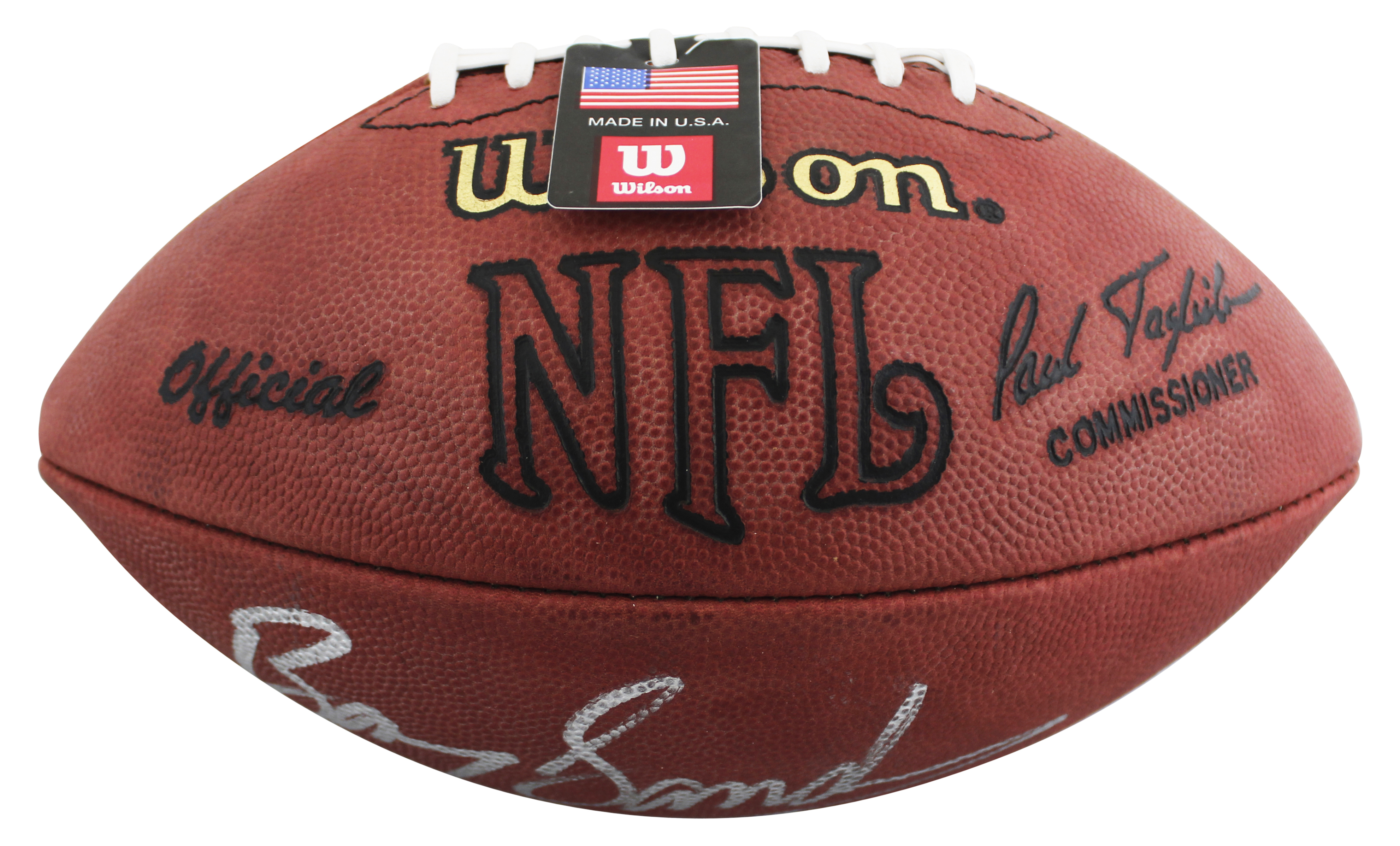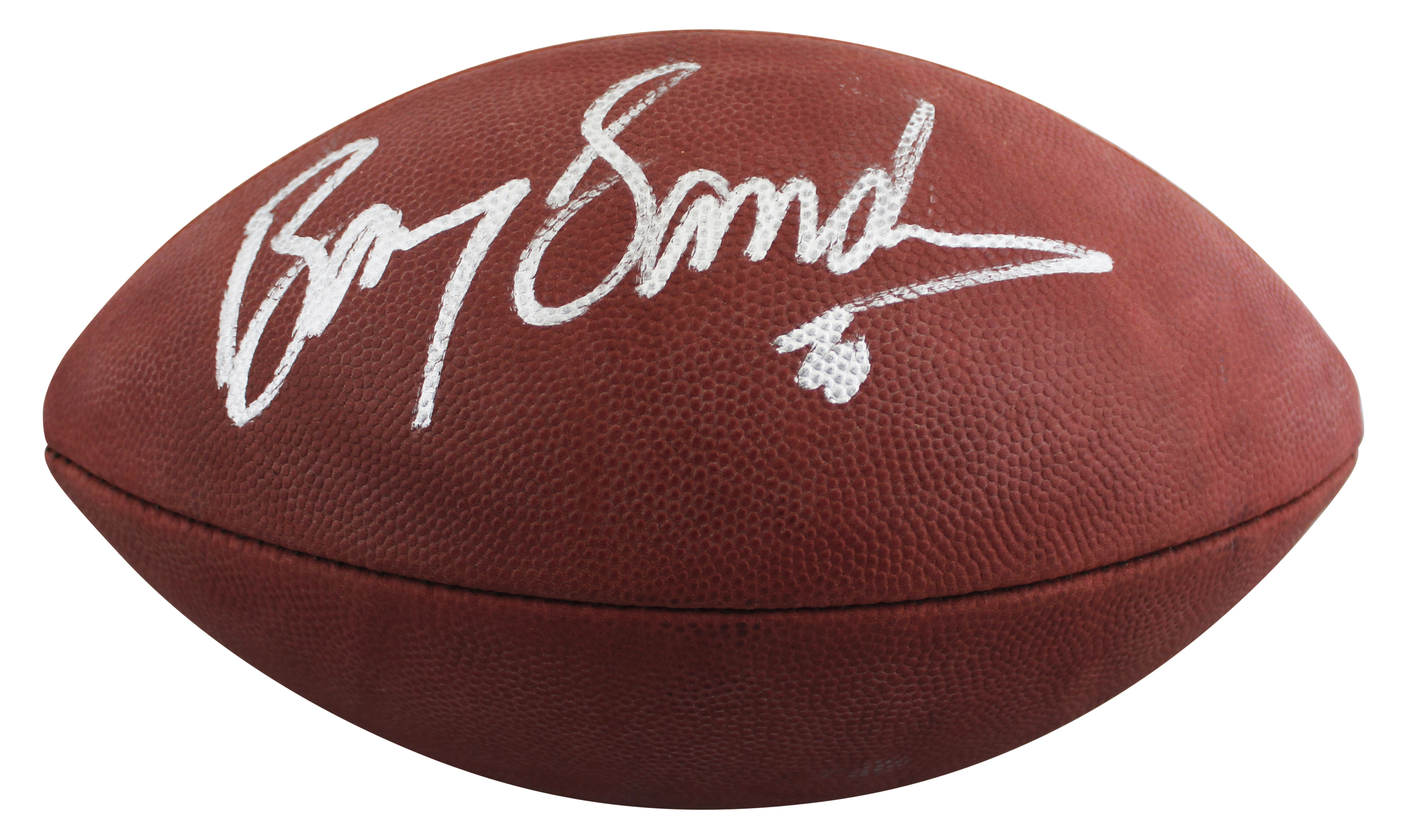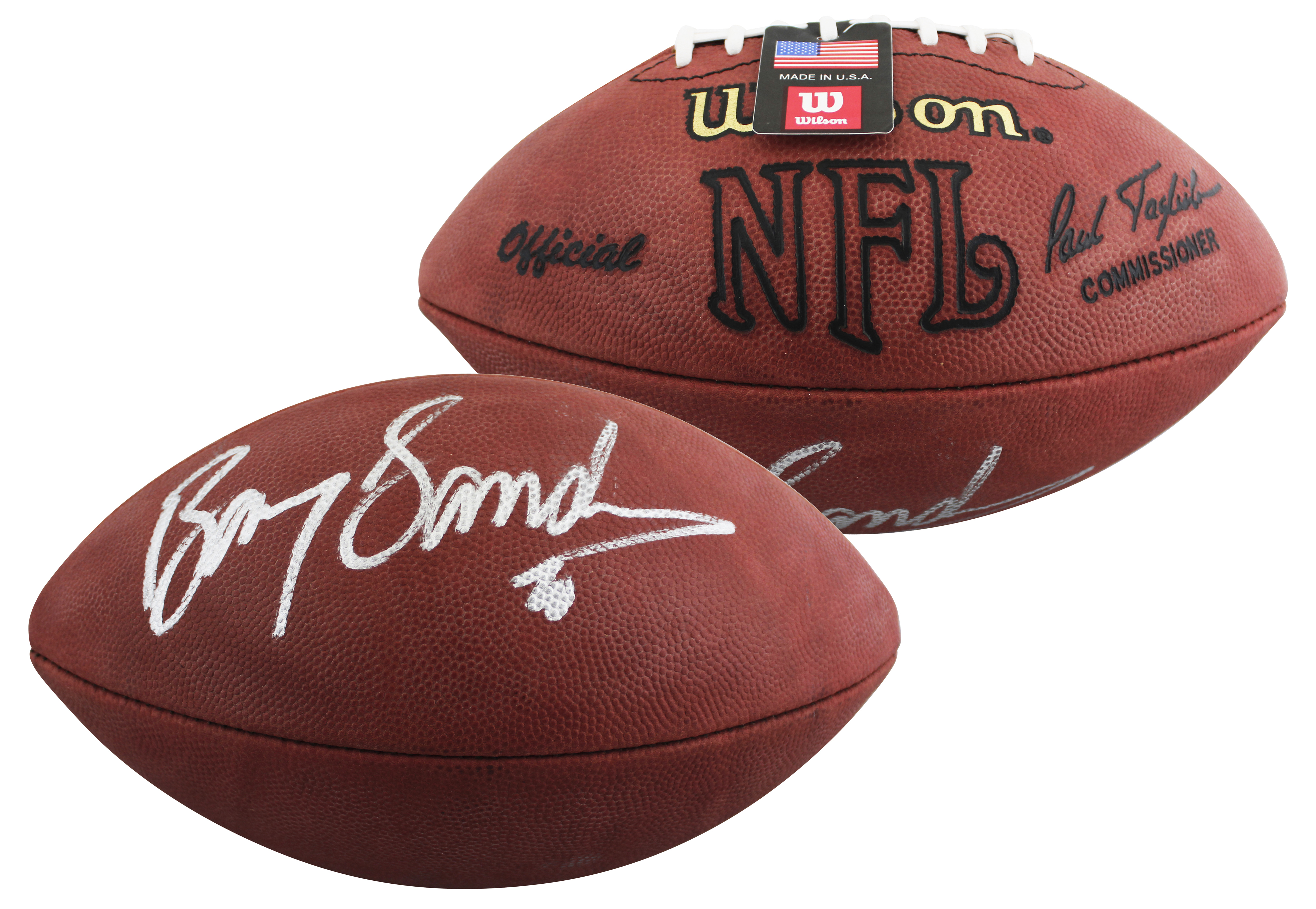 This Autographed Wilson Official Nfl Football has been Personally Signed by Barry Sanders of the Detroit Lions. This item is 100% Authentic to include a hologram by Beckett Authentication Services. This item will come with an affixed Beckett Authentication Services (BAS) authentication sticker, which includes a scannable QR code to verify authenticity. Please note that Beckett no longer provides serial-numbered COA cards, and the attached BAS sticker will serve as the complete authentication for this item. The authenticity can be verified on Beckett Authentication Services website. The original bladder on this football has been replaced, so it will be slightly lighter than a normal football.