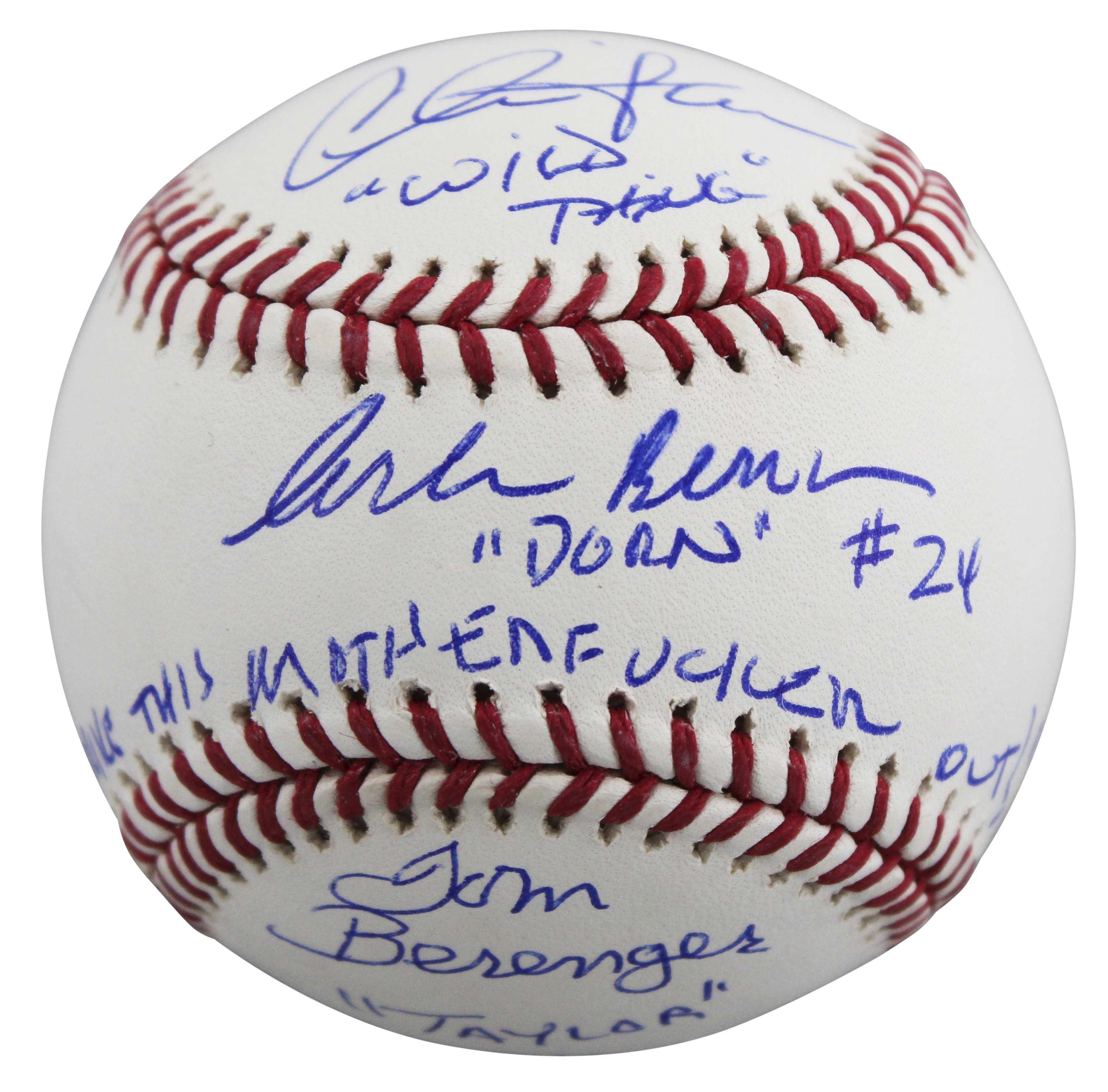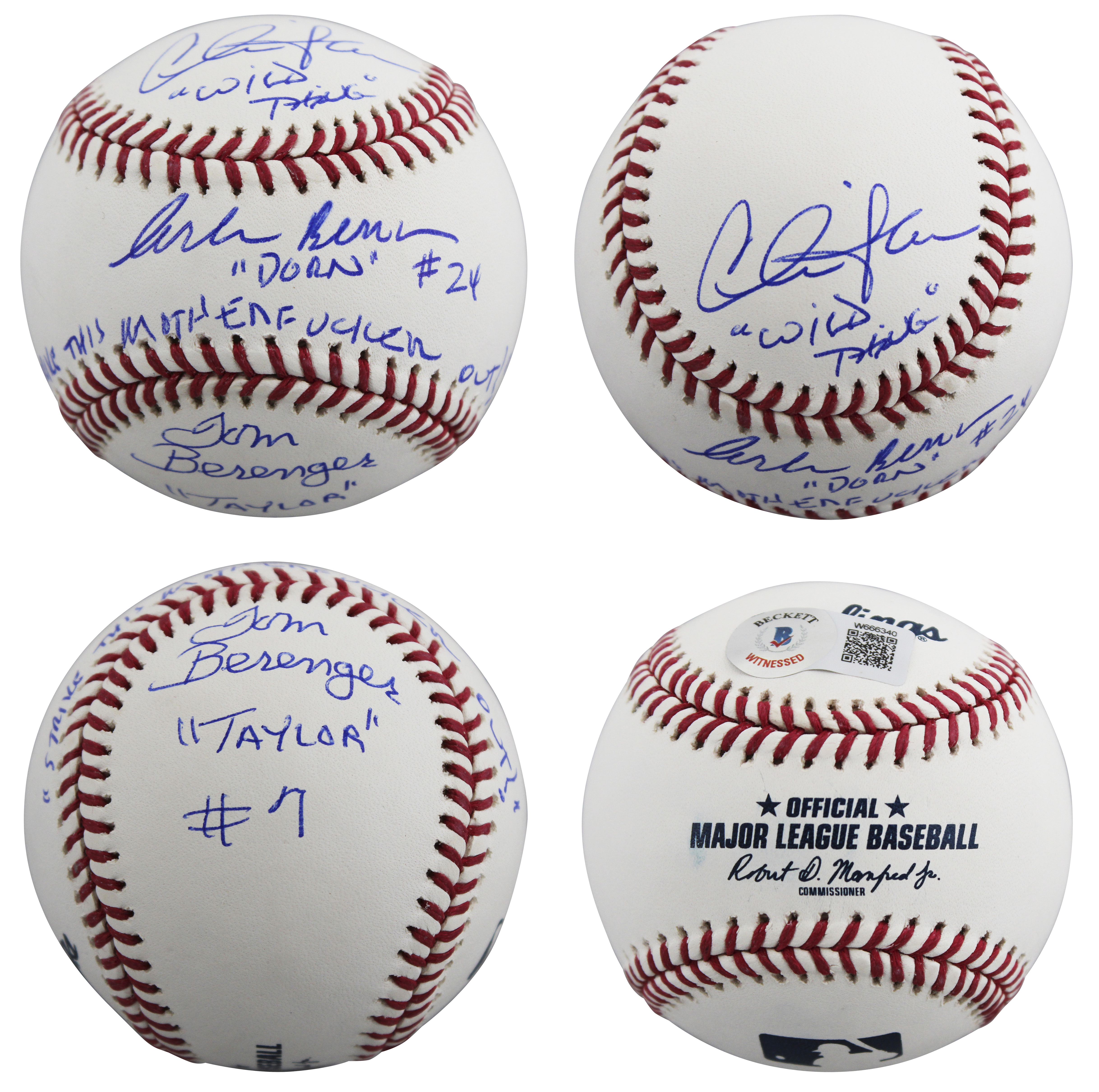 This Autographed Baseball W/ Gold Glove Acrylic Display Case with the inscription of "Wild Thing (Sheen), Taylor #7 (Berenger), Strike This M*****F***** Out, Dorn #24 (Bernsen)" has been Personally Signed by Charlie Sheen, Tom Berenger & Corbin Bernsen of Major League. This item is 100% Authentic to include a hologram by Beckett Authentication Services. This item will come with an affixed Beckett Authentication Services (BAS) authentication sticker, which includes a scannable QR code to verify authenticity. Please note that Beckett no longer provides serial-numbered COA cards, and the attached BAS sticker will serve as the complete authentication for this item. This is a BAS Witnessed Protection Program item which means a Beckett Authentication Service representative was present when this item was being signed. We conducted an autograph signing with Charlie Sheen, Tom Berenger & Corbin Bernsen where multiples of the same item were signed. While the photographs are representative of this item, the size, placement and strength of the signature may vary. Each item is hand signed, therefore, each autograph is unique.