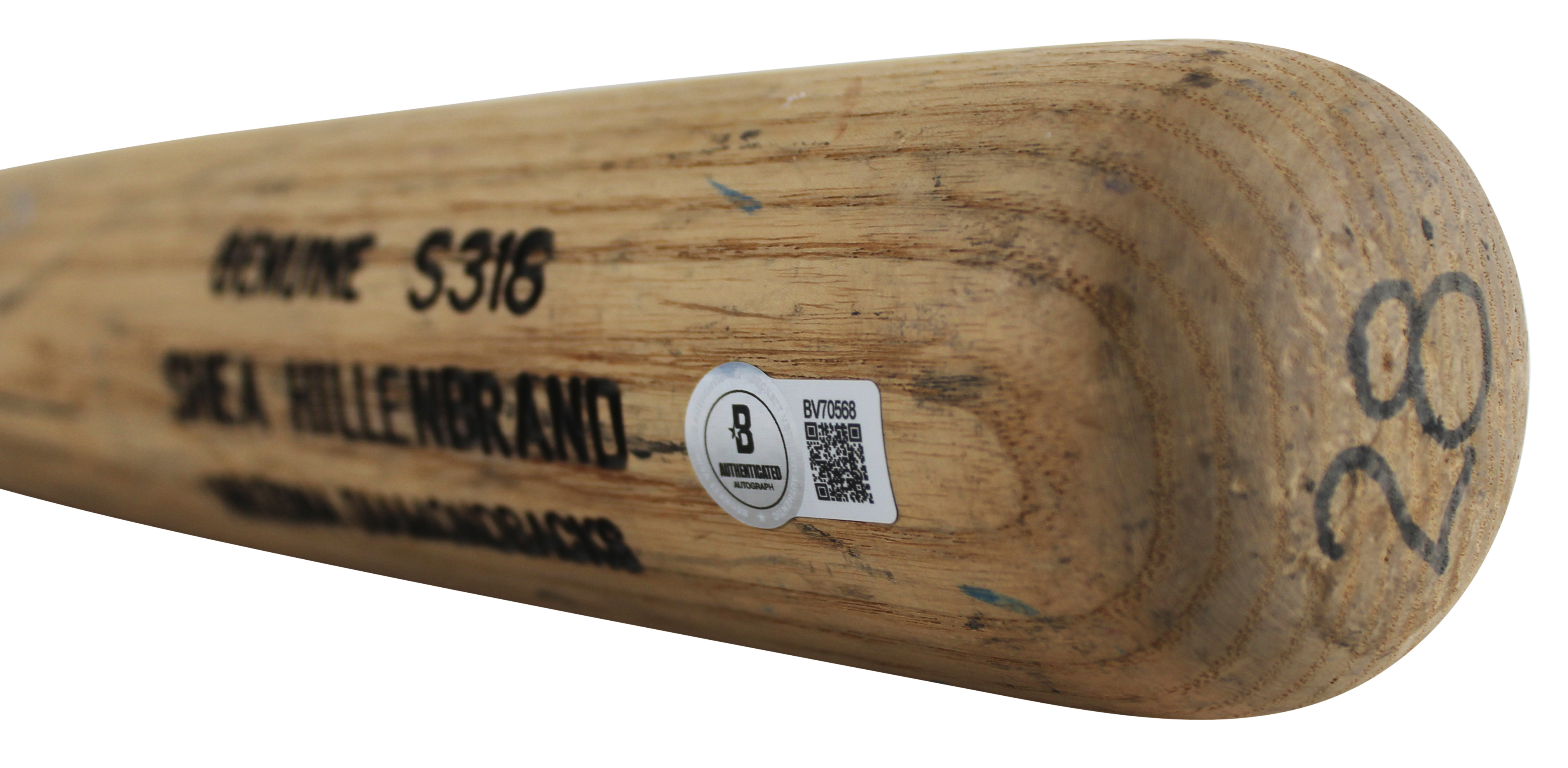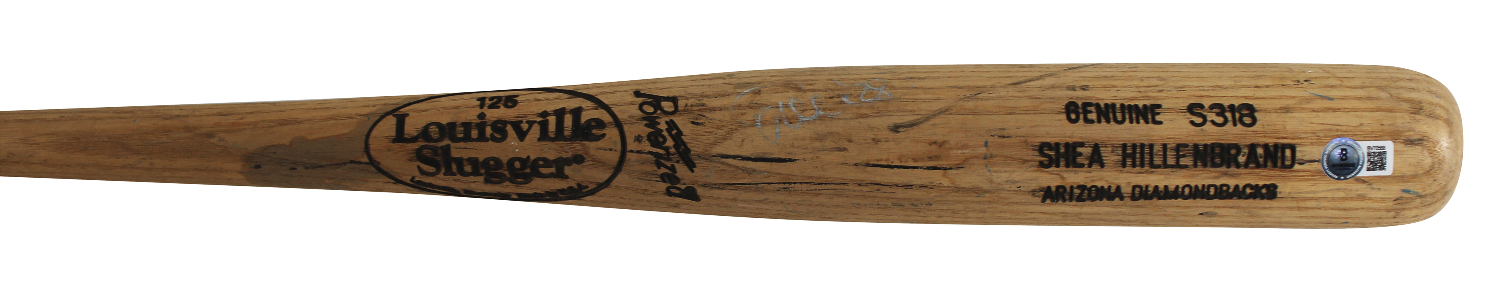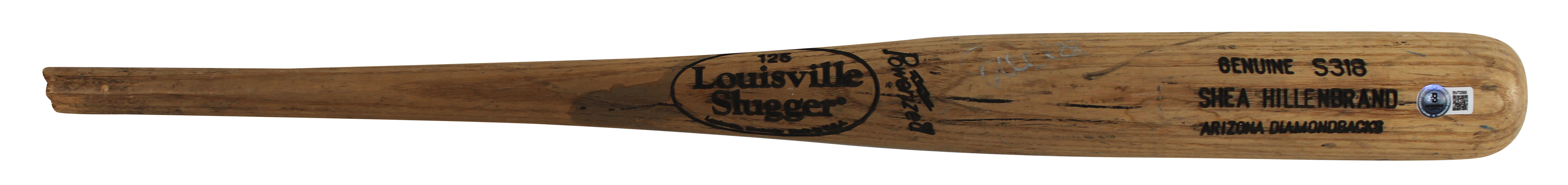 This Autographed Game Used Louisville Slugger Player Model Broken Baseball Bat has been Personally Signed by Shea Hillenbrand of the Arizona Diamondbacks. This item is 100% Authentic to include a hologram by Beckett Authentication Services. This item will come with an affixed Beckett Authentication Services (BAS) authentication sticker, which includes a scannable QR code to verify authenticity. Please note that Beckett no longer provides serial-numbered COA cards, and the attached BAS sticker will serve as the complete authentication for this item. The authenticity can be verified on Beckett Authentication Services website. This bat does not have authentication for it being game used, however, it does match and is consistent with known exemplars from this era.