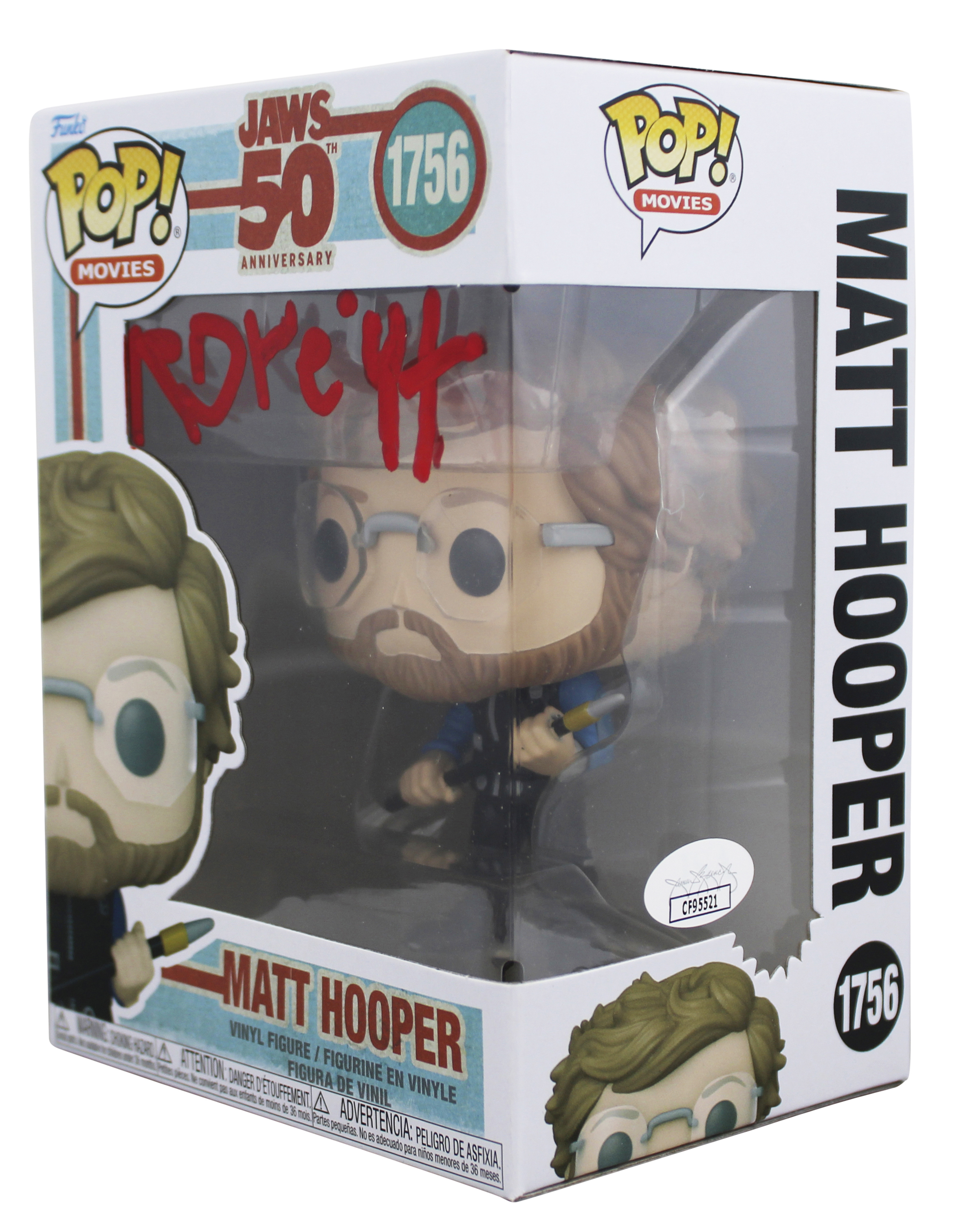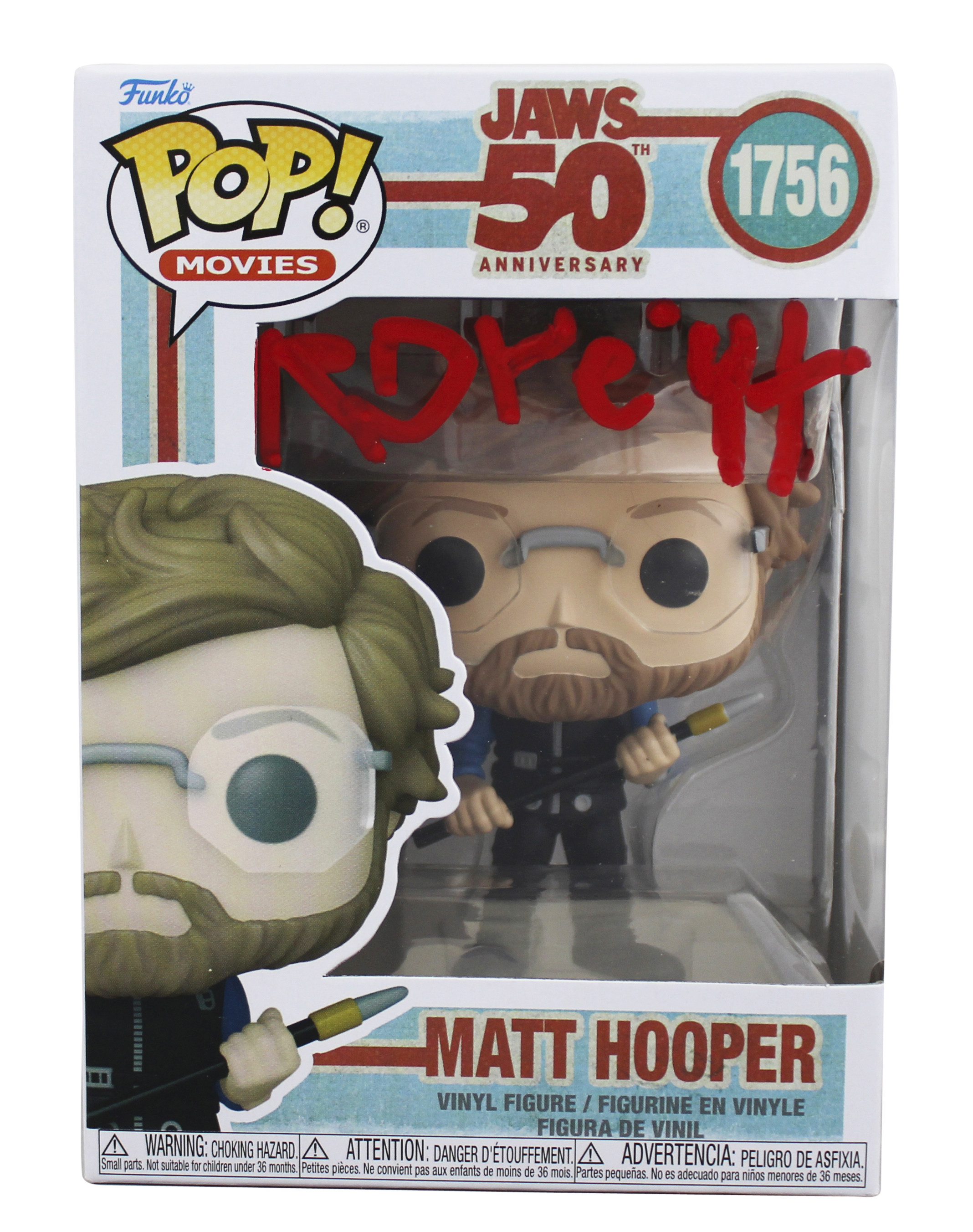 This Autographed Matt Hooper #1756 Funko Pop Vinyl Figure has been Personally Signed by Richard Dreyfuss of Jaws. This item is 100% Authentic to include a Certificate of Authenticity (COA) / hologram by JSA. The authenticity can be verified on JSA website. This item will ship in a Pop! Protector, please refer to the photos for condition of the item prior to purchase, these are in good condition but would not be considered mint.