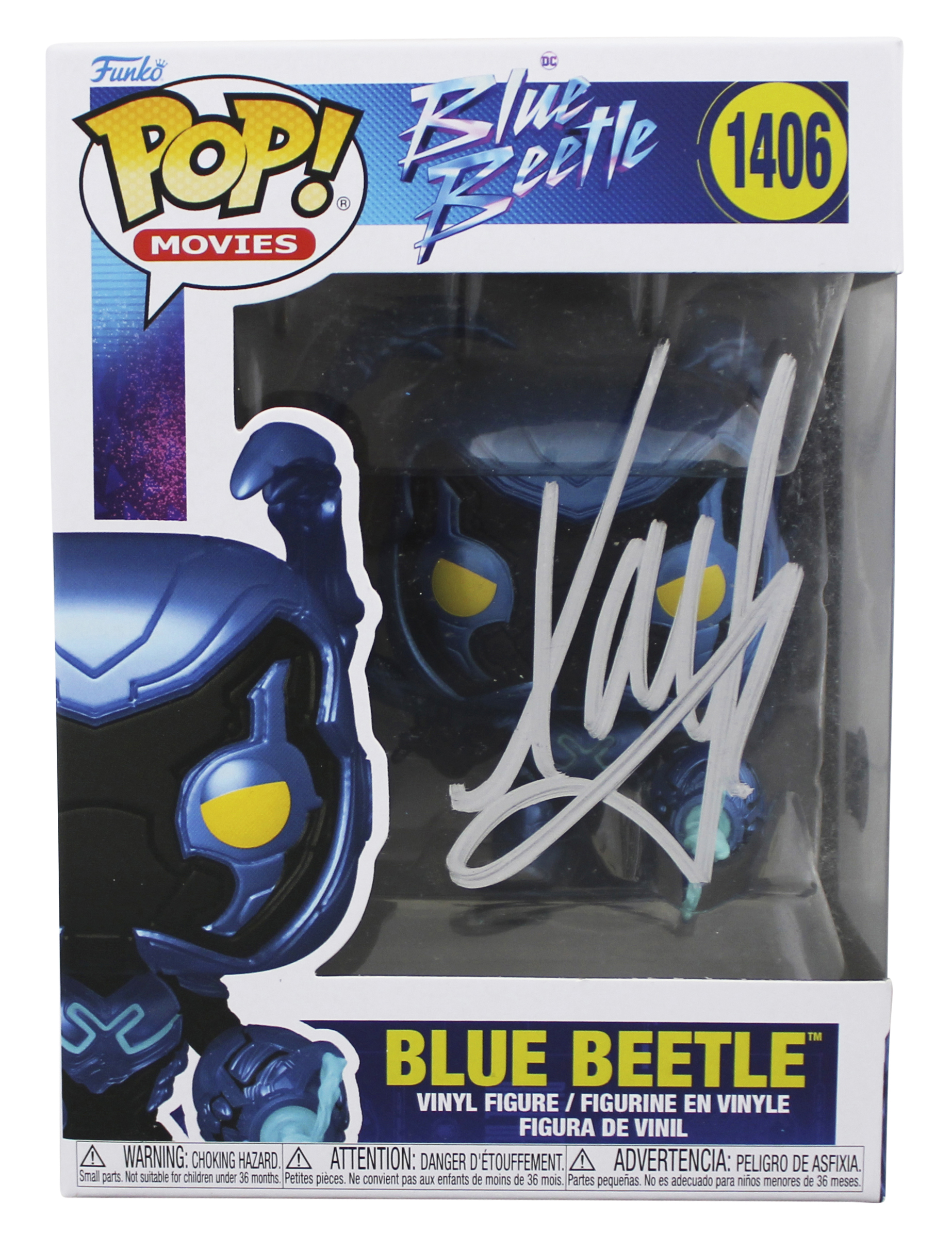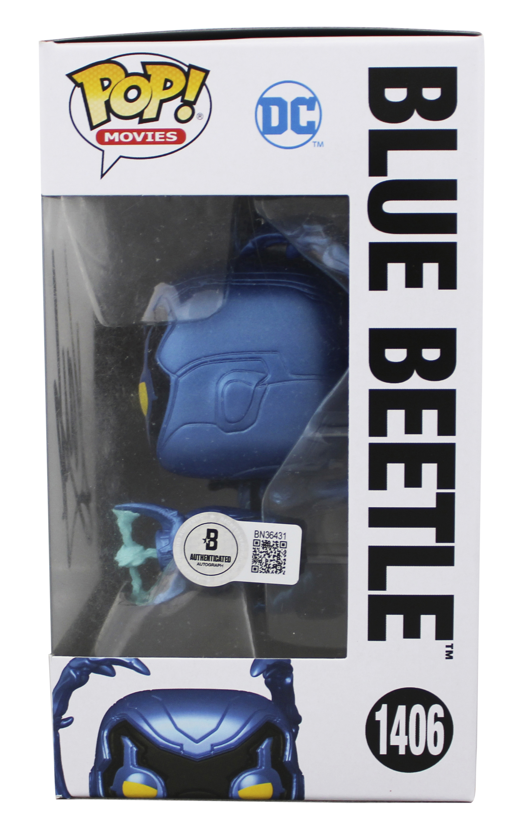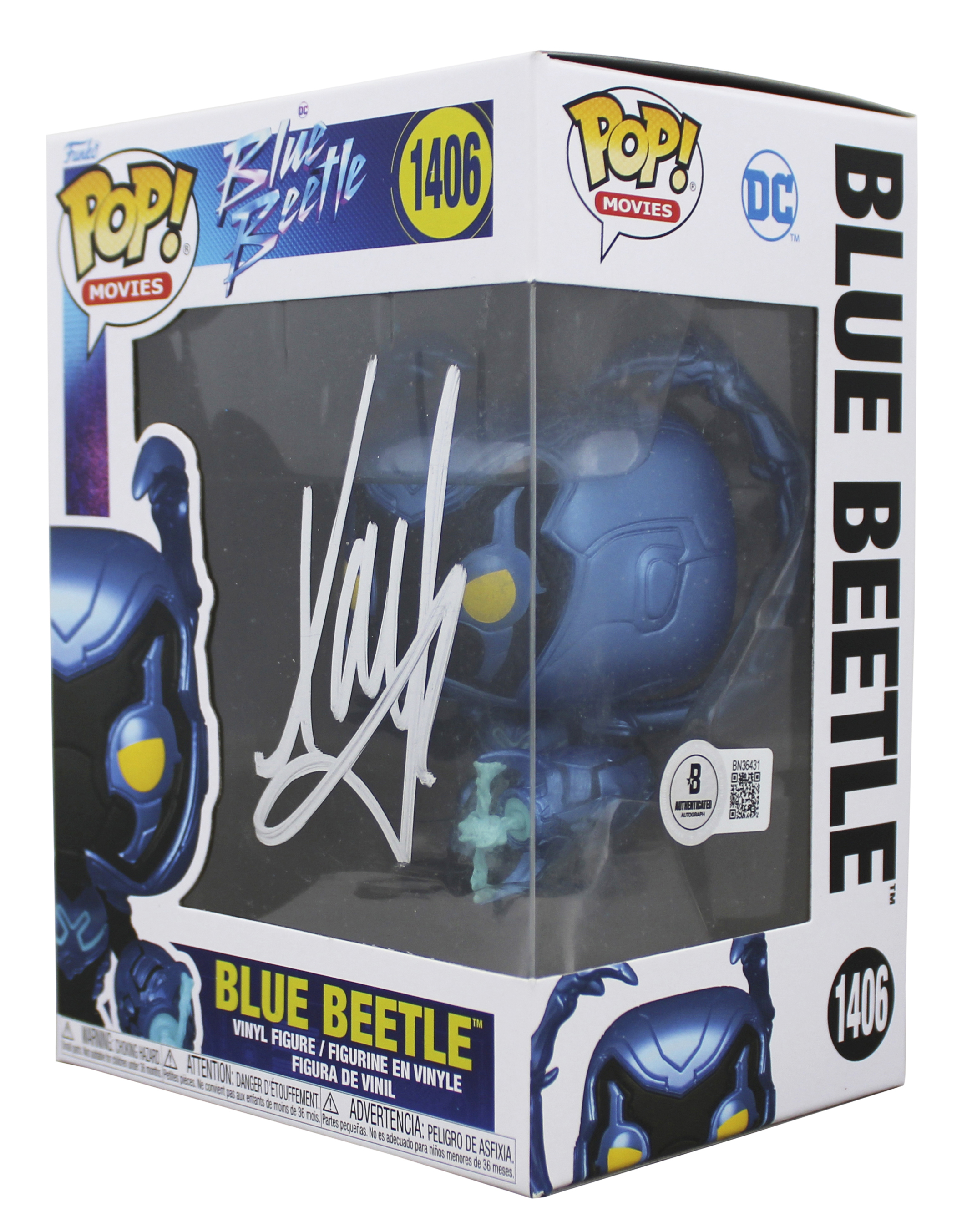 This Autographed Blue Beetle #1406 Funko Pop Vinyl Figure has been Personally Signed by Xolo Mariduena of Blue Beetle. This item is 100% Authentic to include a hologram by Beckett Authentication Services. This item will come with an affixed Beckett Authentication Services (BAS) authentication sticker, which includes a scannable QR code to verify authenticity. Please note that Beckett no longer provides serial-numbered COA cards, and the attached BAS sticker will serve as the complete authentication for this item. The authenticity can be verified on Beckett Authentication Services website. This item will ship in a Pop! Protector, please refer to the photos for condition of the item prior to purchase, these are in good condition but would not be considered mint.