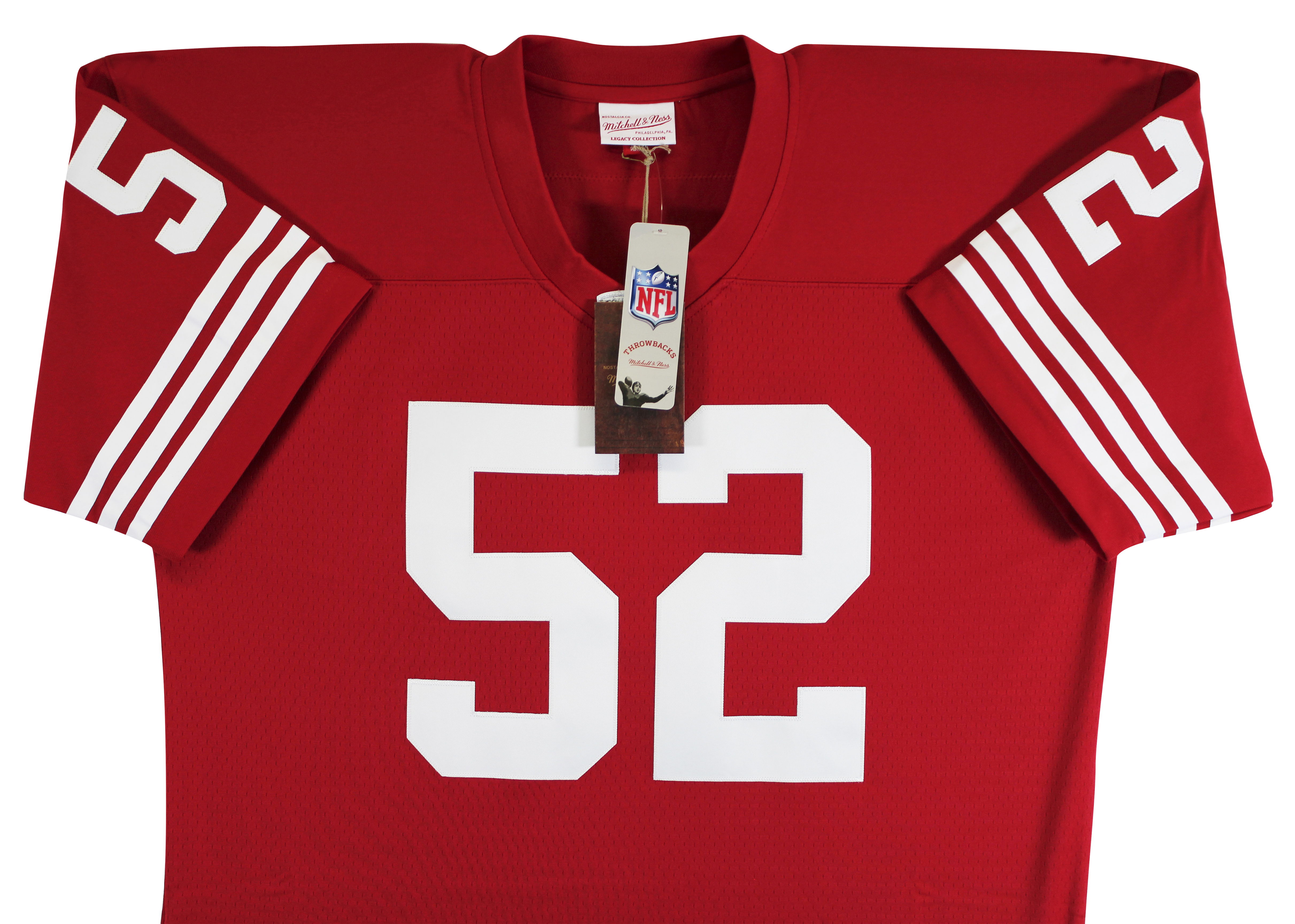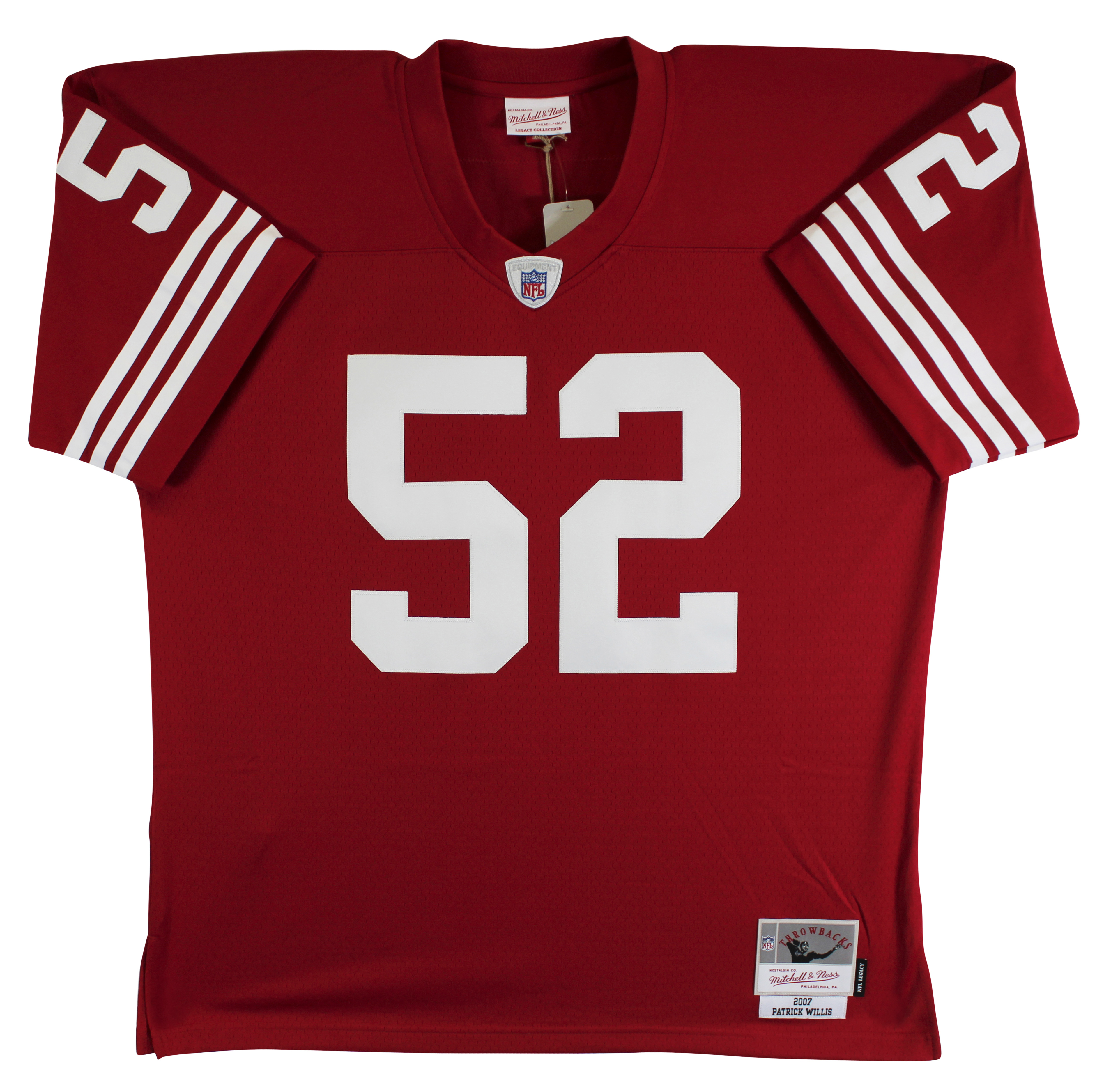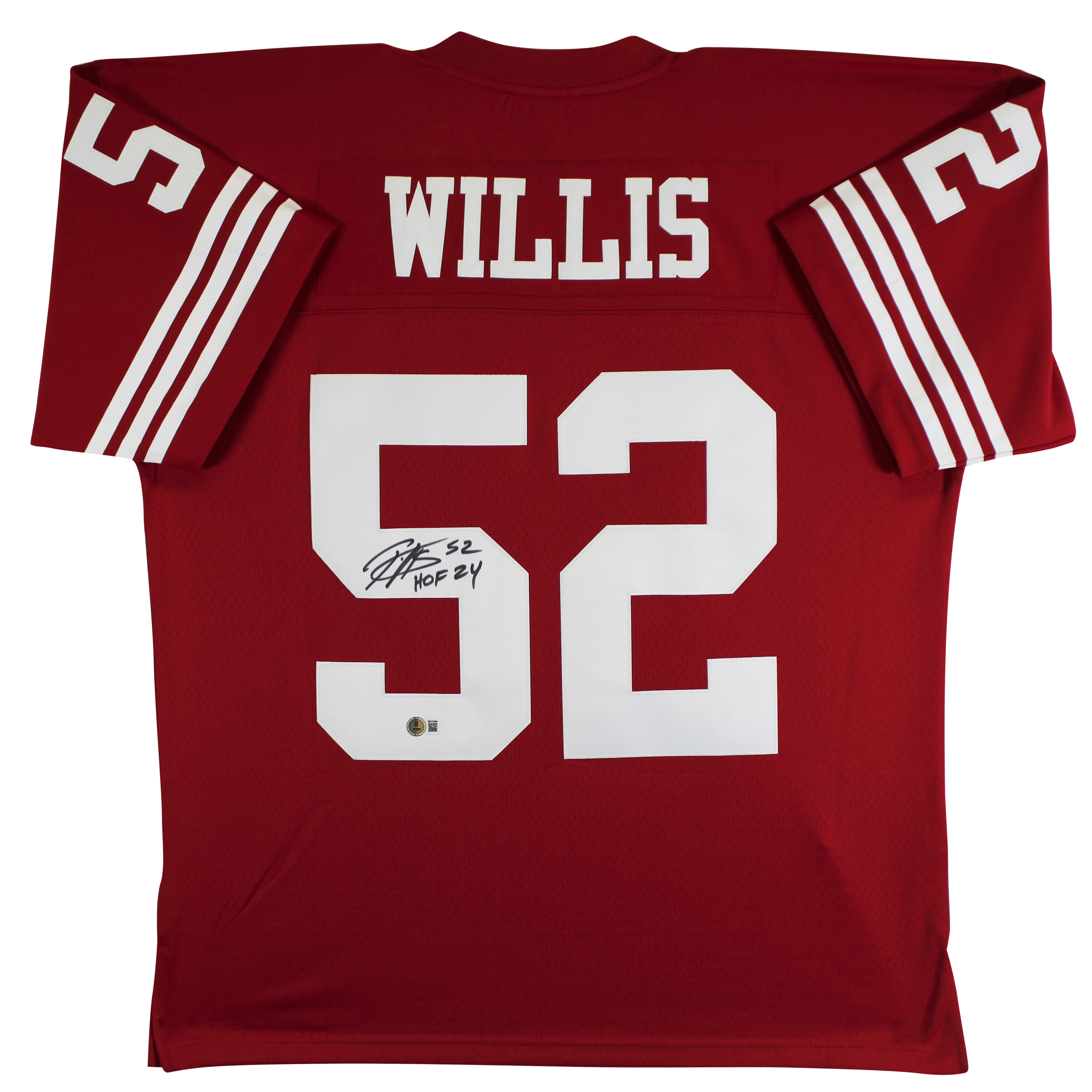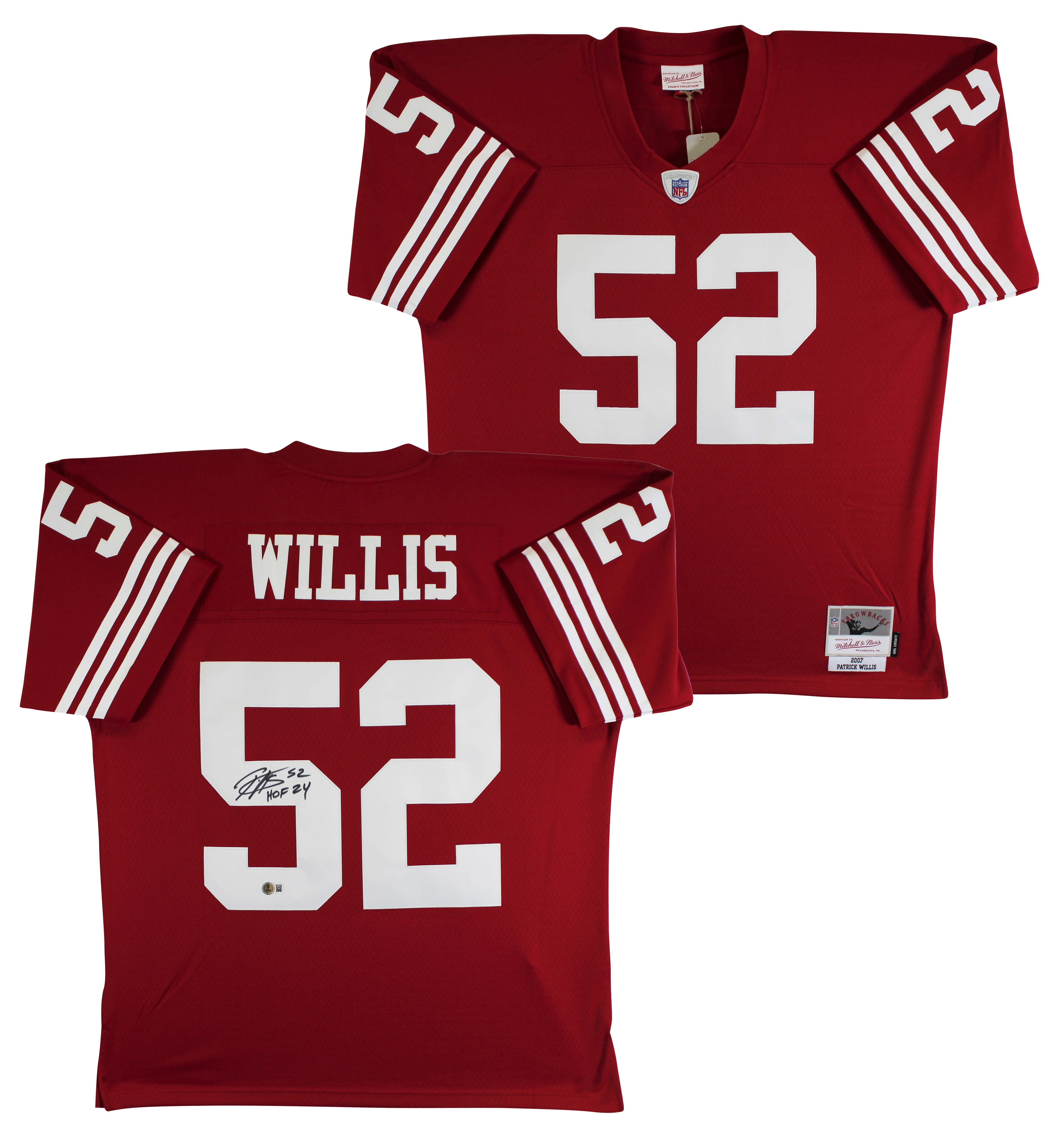 This Autographed Red Mitchell & Ness Jersey with the inscription of "HOF 24" has been Personally Signed by Patrick Willis of the San Francisco 49ers. This item is 100% Authentic to include a hologram by Beckett Authentication Services. This item will come with an affixed Beckett Authentication Services (BAS) authentication sticker, which includes a scannable QR code to verify authenticity. Please note that Beckett no longer provides serial-numbered COA cards, and the attached BAS sticker will serve as the complete authentication for this item. This is a BAS Witnessed Protection Program item which means a Beckett Authentication Service representative was present when this item was being signed. We conducted an autograph signing with Patrick Willis where multiples of the same item were signed. While the photographs are representative of this item, the size, placement and strength of the signature may vary. Each item is hand signed, therefore, each autograph is unique. This item can be verified through BAS Witnessed. This is a X-Large sized Jersey.