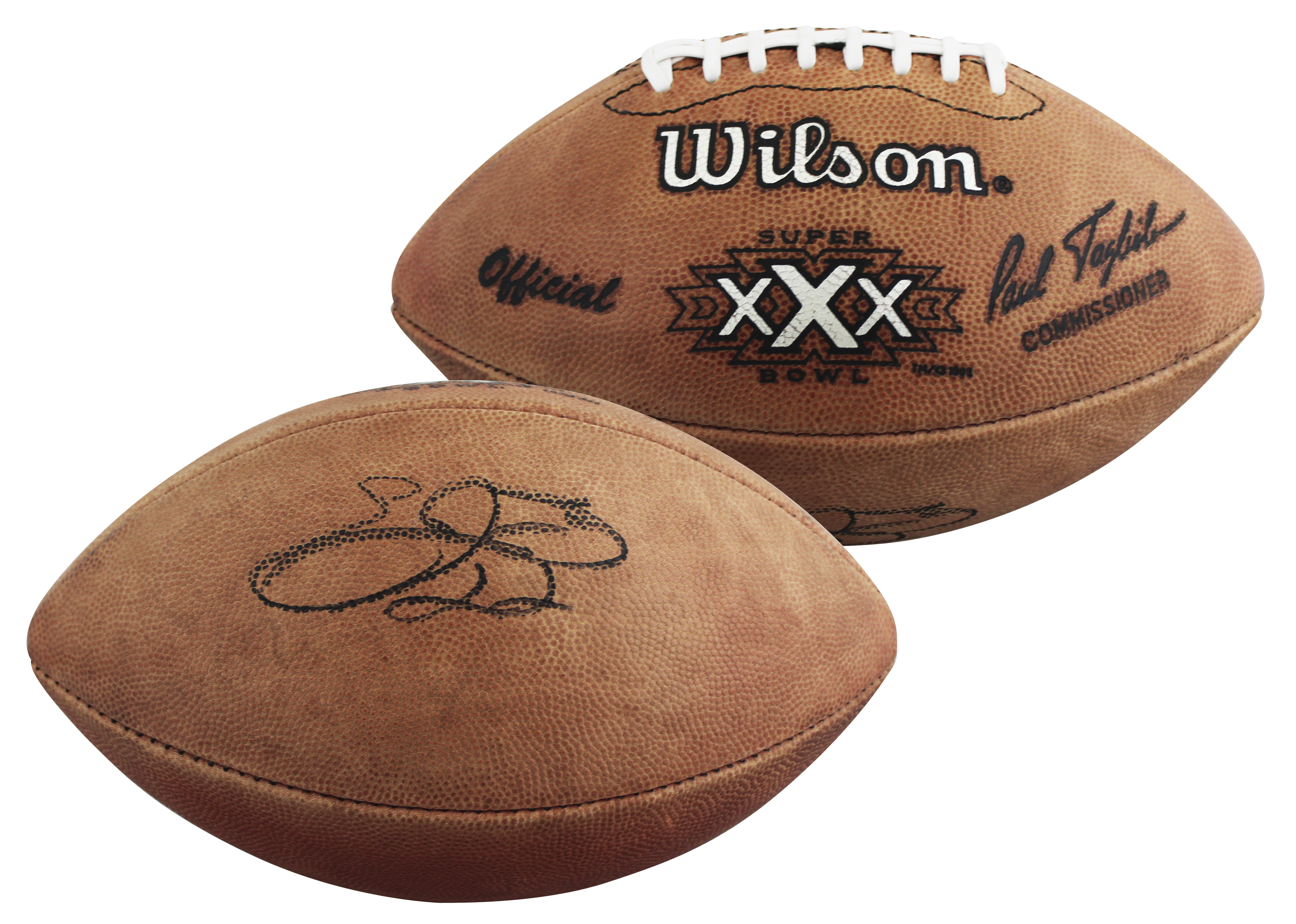 This Autographed Official Wilson Super Bowl XXX Logo Nfl Football has been Personally Signed by Emmitt Smith of the Dallas Cowboys. This item is 100% Authentic to include a hologram by Beckett Authentication Services. This item will come with an affixed Beckett Authentication Services (BAS) authentication sticker, which includes a scannable QR code to verify authenticity. Please note that Beckett no longer provides serial-numbered COA cards, and the attached BAS sticker will serve as the complete authentication for this item. This is a BAS Witnessed Protection Program item which means a Beckett Authentication Service representative was present when this item was being signed. The authenticity can be verified on Beckett Authentication Services website.