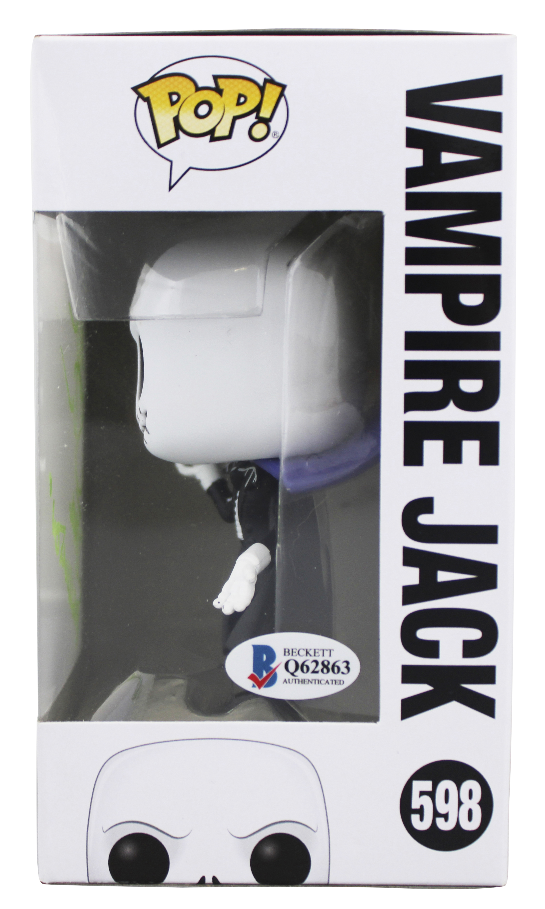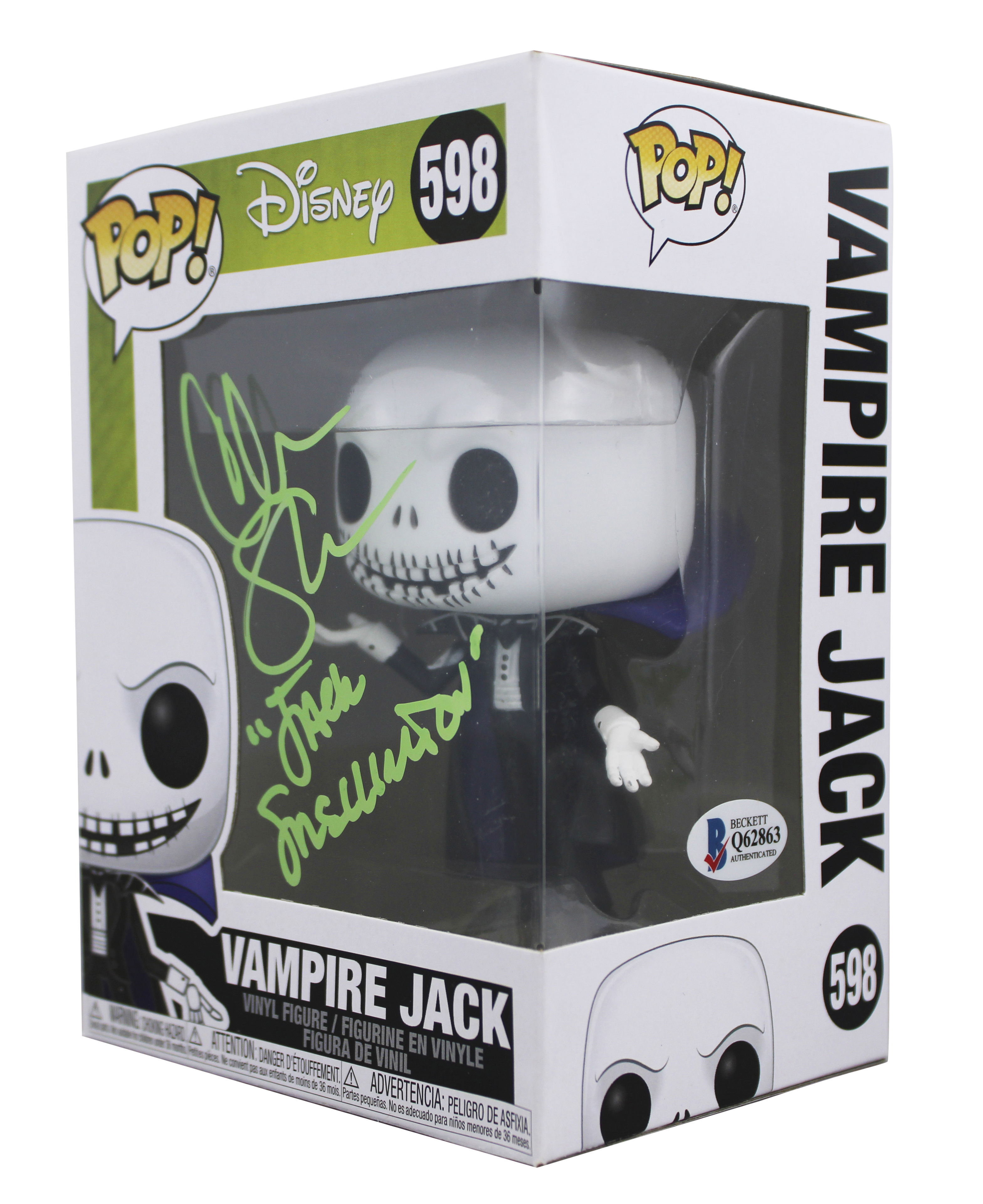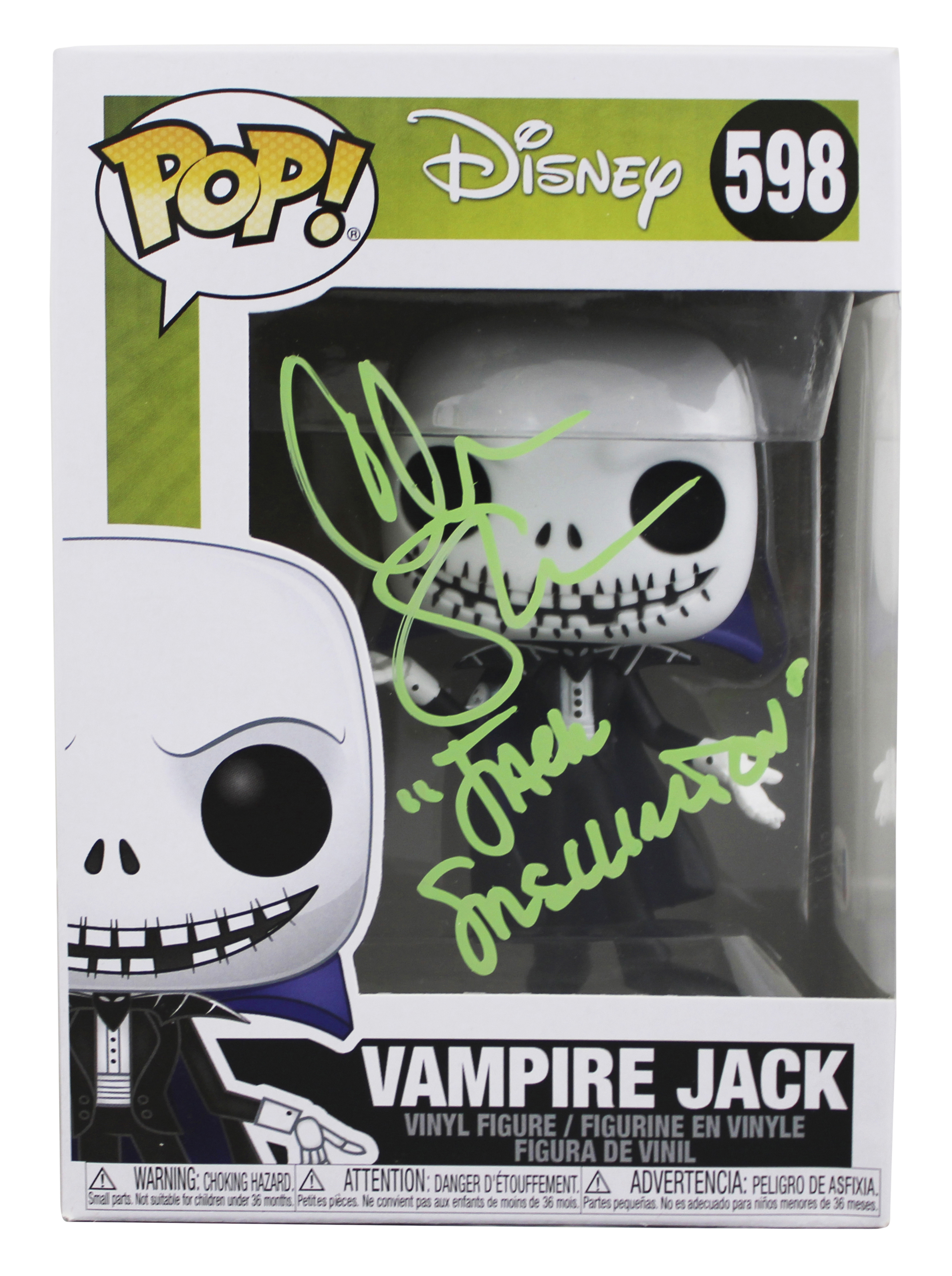 This Autographed Jack Skellington #598 Funko Pop Vinyl Figure with the inscription of "Jack Skellington" has been Personally Signed by Chris Sarandon of The Nightmare Before Christmas. This item is 100% Authentic to include a Certificate of Authenticity (COA) / hologram by Beckett Authentication Services. The authenticity can be verified on Beckett Authentication Services website. This will be shipped in a Pop Protector, each will have some handling wear from shipment to the signing and back. This Funko is in good condition, but it would not be considered mint. Please refer to pictures for item's condition prior to purchase.