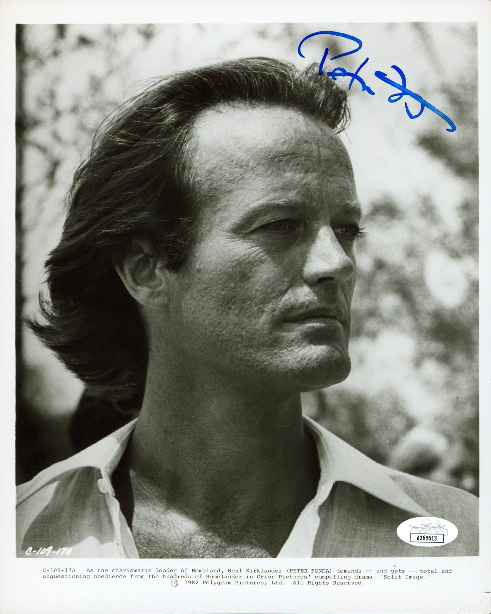 This Autographed Vertical 8x10 Photo has been Personally Signed by Peter Fonda of Split Image. This item is 100% Authentic to include a Certificate of Authenticity (COA) / hologram by JSA. The authenticity can be verified on JSA website.