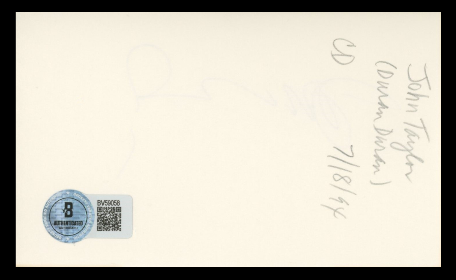 This Autographed 3x5 Index Card has been Personally Signed by John Taylor of Duran Duran. This item is 100% Authentic to include a hologram by Beckett Authentication Services. This item will come with an affixed Beckett Authentication Services (BAS) authentication sticker, which includes a scannable QR code to verify authenticity. Please note that Beckett no longer provides serial-numbered COA cards, and the attached BAS sticker will serve as the complete authentication for this item. The authenticity can be verified on Beckett Authentication Services website.