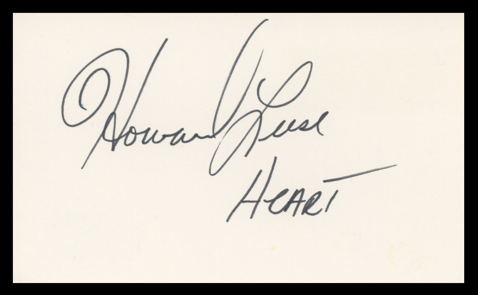 This Autographed 3x5 Index Card with the inscription of "Heart" has been Personally Signed by Howard Leese of Four Christmases. This item is 100% Authentic to include a hologram by Beckett Authentication Services. This item will come with an affixed Beckett Authentication Services (BAS) authentication sticker, which includes a scannable QR code to verify authenticity. Please note that Beckett no longer provides serial-numbered COA cards, and the attached BAS sticker will serve as the complete authentication for this item. The authenticity can be verified on Beckett Authentication Services website.