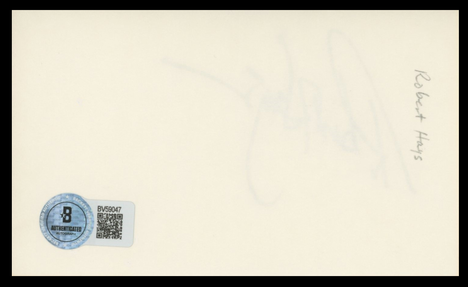 This Autographed 3x5 Index Card has been Personally Signed by Robert Hays of Airplane!. This item is 100% Authentic to include a hologram by Beckett Authentication Services. This item will come with an affixed Beckett Authentication Services (BAS) authentication sticker, which includes a scannable QR code to verify authenticity. Please note that Beckett no longer provides serial-numbered COA cards, and the attached BAS sticker will serve as the complete authentication for this item. The authenticity can be verified on Beckett Authentication Services website.