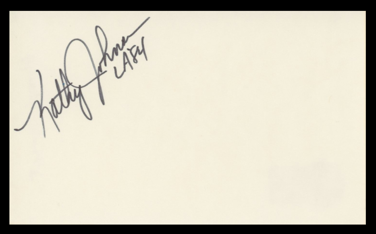 Kathy Johnson LA 84 Authentic Signed 3x5 Index Card Autographed BAS #BV59034