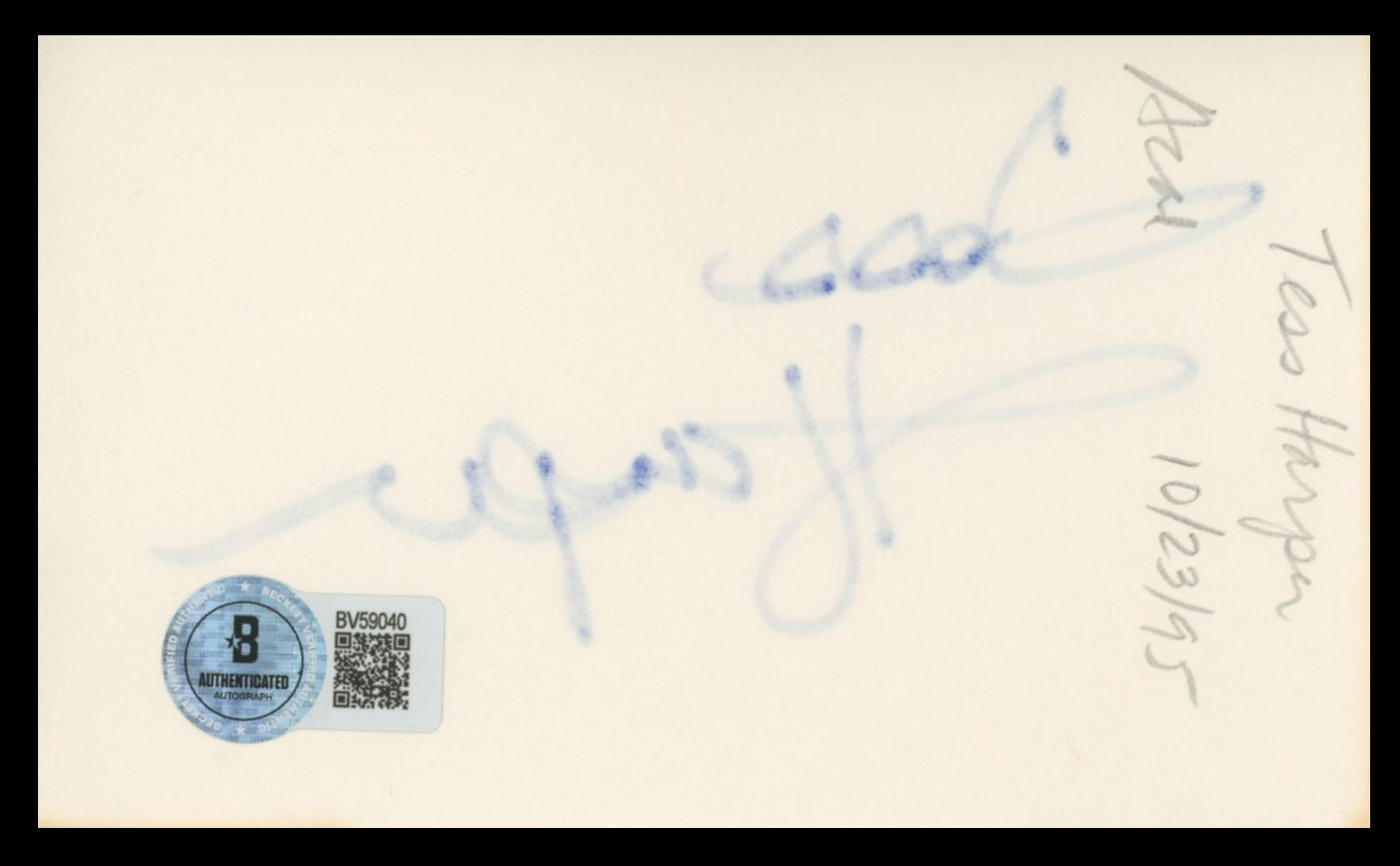 This Autographed 3x5 Index Card has been Personally Signed by Tess Harper of Crimes of the Heart. This item is 100% Authentic to include a hologram by Beckett Authentication Services. This item will come with an affixed Beckett Authentication Services (BAS) authentication sticker, which includes a scannable QR code to verify authenticity. Please note that Beckett no longer provides serial-numbered COA cards, and the attached BAS sticker will serve as the complete authentication for this item. The authenticity can be verified on Beckett Authentication Services website.