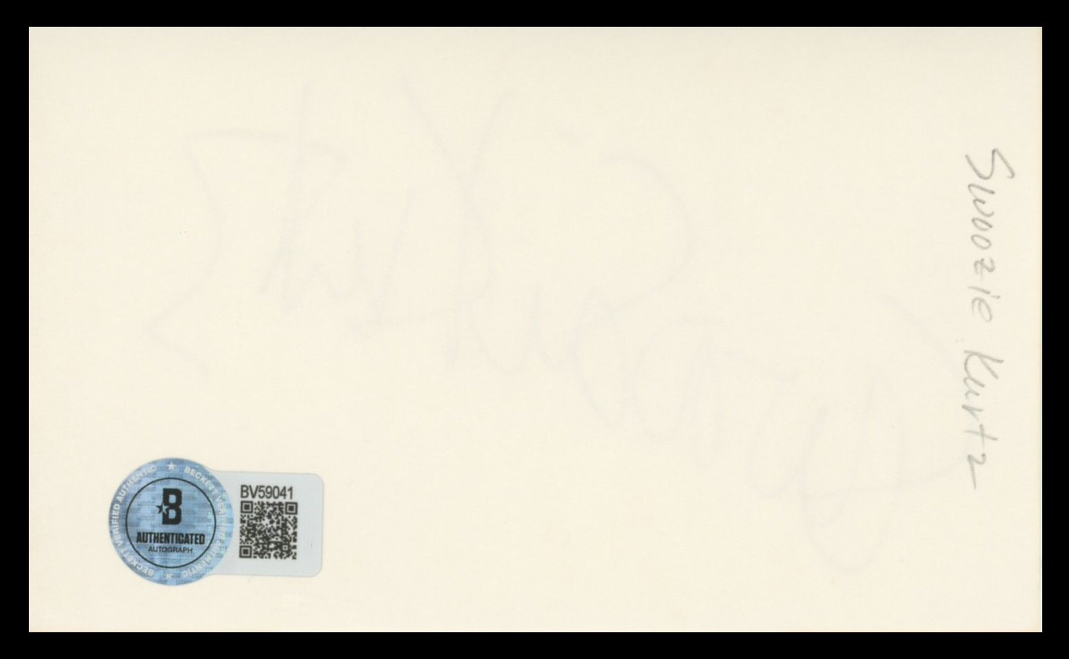 This Autographed 3x5 Index Card has been Personally Signed by Swoosie Kurtz of Sisters. This item is 100% Authentic to include a hologram by Beckett Authentication Services. This item will come with an affixed Beckett Authentication Services (BAS) authentication sticker, which includes a scannable QR code to verify authenticity. Please note that Beckett no longer provides serial-numbered COA cards, and the attached BAS sticker will serve as the complete authentication for this item. The authenticity can be verified on Beckett Authentication Services website.