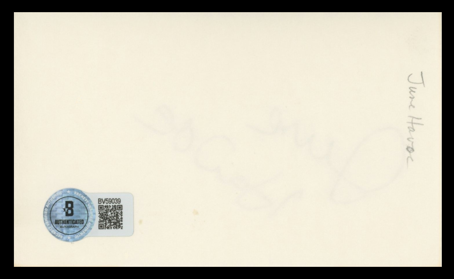 June Havoc Gentleman's Agreement Authentic Signed 3x5 Index Card BAS #BV59039