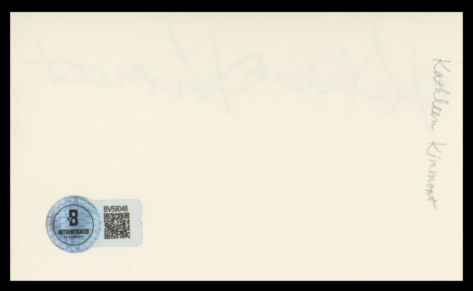 This Autographed 3x5 Index Card has been Personally Signed by Kathleen Kinmont of Renegade. This item is 100% Authentic to include a hologram by Beckett Authentication Services. This item will come with an affixed Beckett Authentication Services (BAS) authentication sticker, which includes a scannable QR code to verify authenticity. Please note that Beckett no longer provides serial-numbered COA cards, and the attached BAS sticker will serve as the complete authentication for this item. The authenticity can be verified on Beckett Authentication Services website.