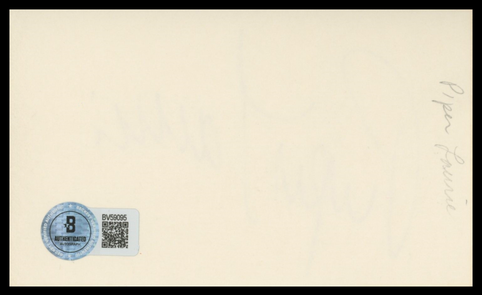 This Autographed 3x5 Index Card has been Personally Signed by Piper Laurie of The Hustler. This item is 100% Authentic to include a hologram by Beckett Authentication Services. This item will come with an affixed Beckett Authentication Services (BAS) authentication sticker, which includes a scannable QR code to verify authenticity. Please note that Beckett no longer provides serial-numbered COA cards, and the attached BAS sticker will serve as the complete authentication for this item. The authenticity can be verified on Beckett Authentication Services website.