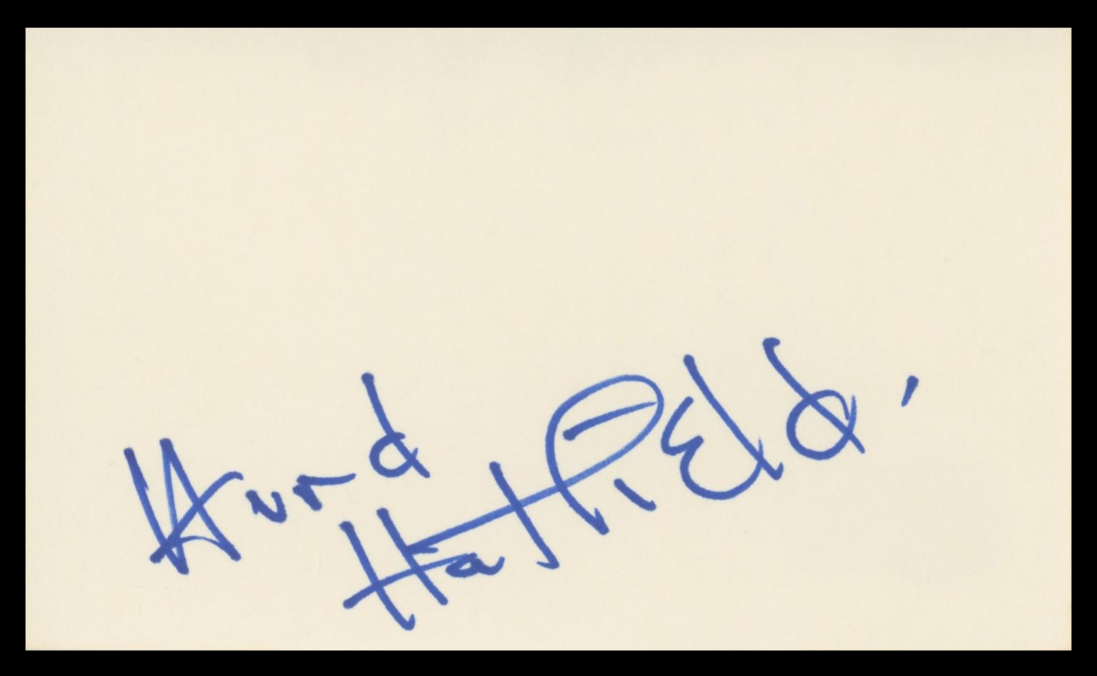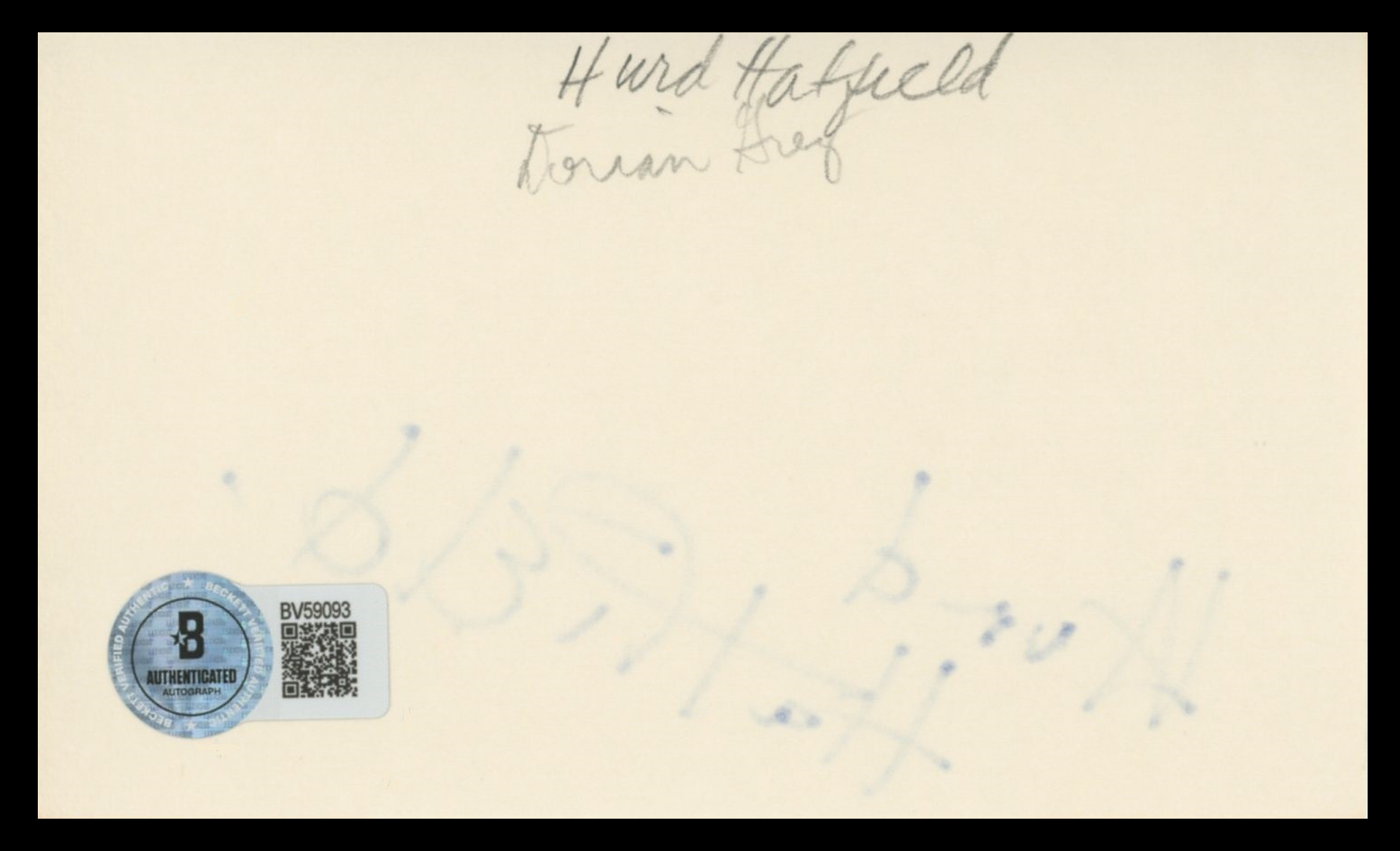 This Autographed 3x5 Index Card has been Personally Signed by Hurd Hatfield of The Picture of Dorian Gray. This item is 100% Authentic to include a hologram by Beckett Authentication Services. This item will come with an affixed Beckett Authentication Services (BAS) authentication sticker, which includes a scannable QR code to verify authenticity. Please note that Beckett no longer provides serial-numbered COA cards, and the attached BAS sticker will serve as the complete authentication for this item. The authenticity can be verified on Beckett Authentication Services website.