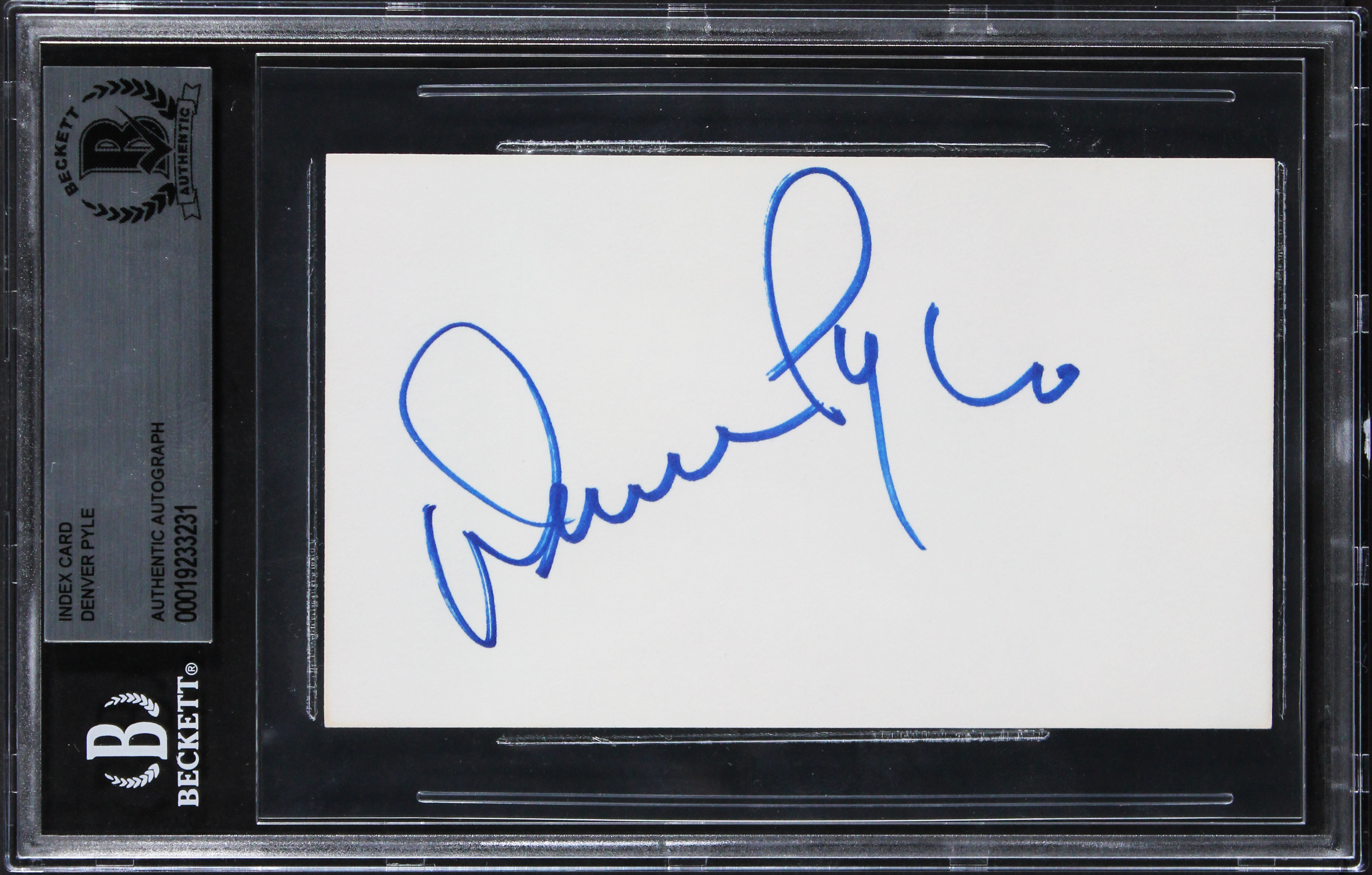 This Autographed 3x5 Index Card has been Personally Signed by Denver Pyle of The Dukes Of Hazzard. This item is 100% Authentic, it comes slabbed and authenticated by Beckett Authentication Services. The authenticity can be verified on Beckett Authentication Services website.