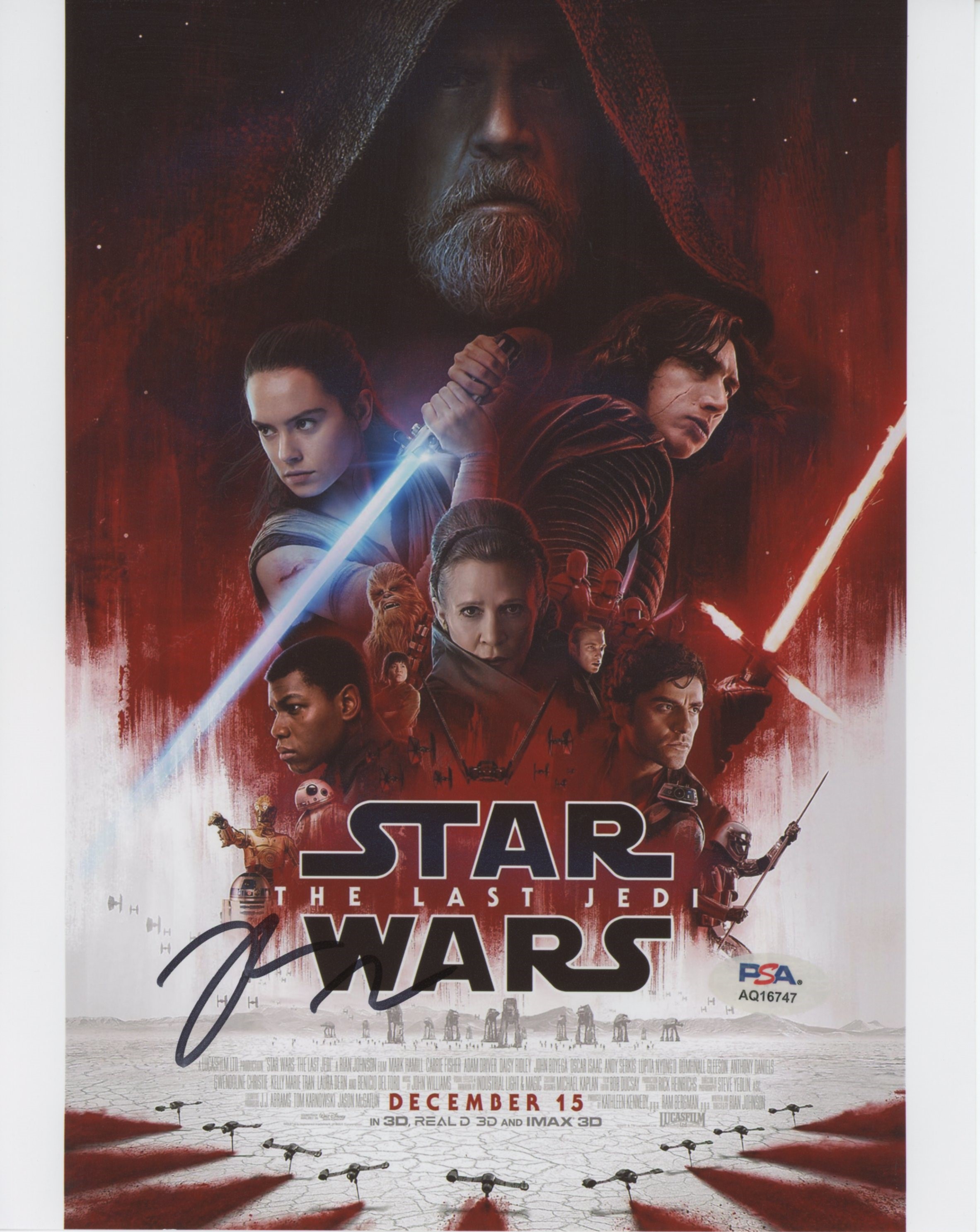 This Autographed 8x10 Photo has been Personally Signed by Rian Johnson of Star Wars The Last Jedi. This item is 100% Authentic and comes with a PSA/DNA Certification Card and a matching numbered Hologram. The authenticity can be verified on Professional Sports Authenticator website.