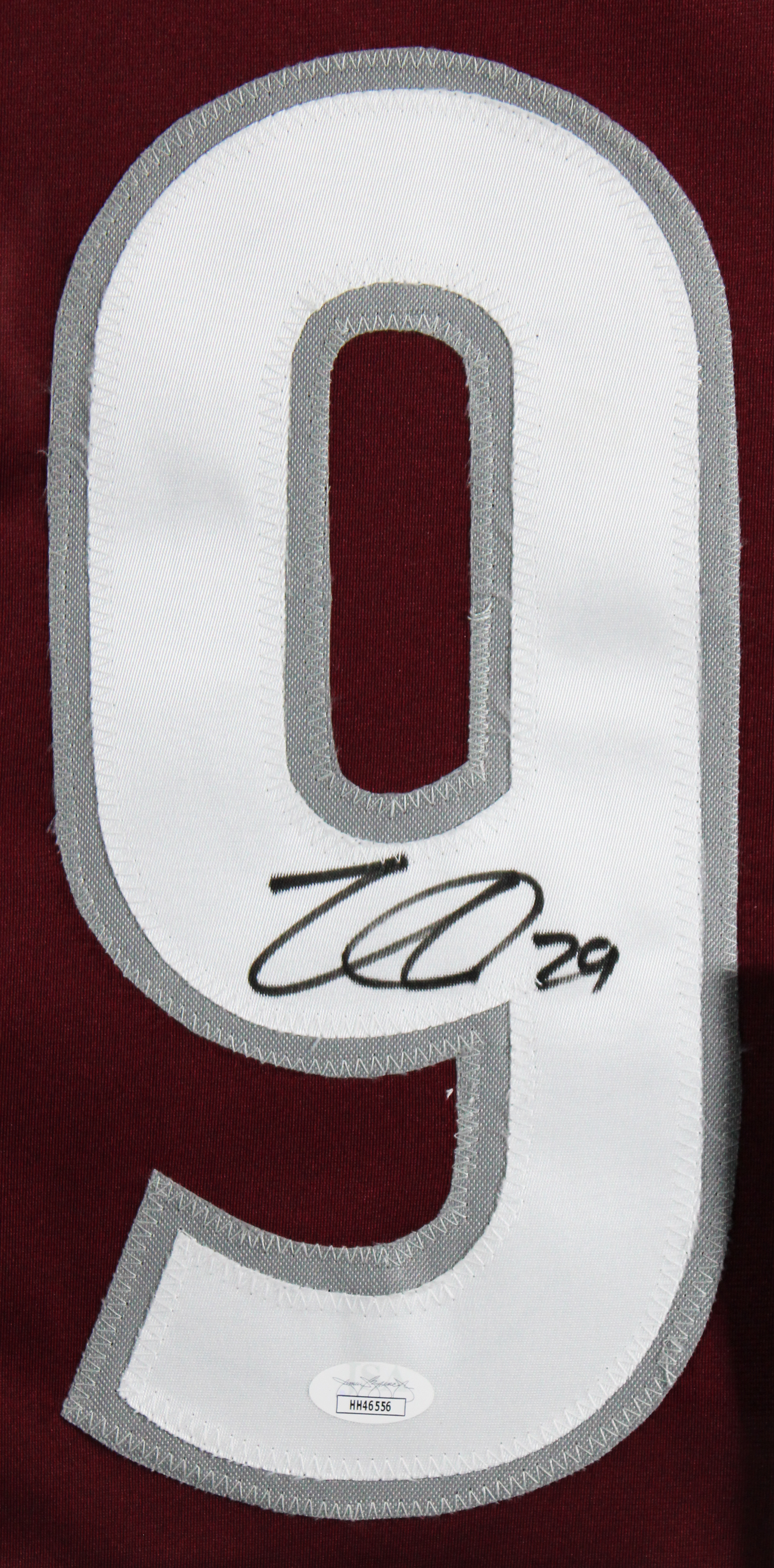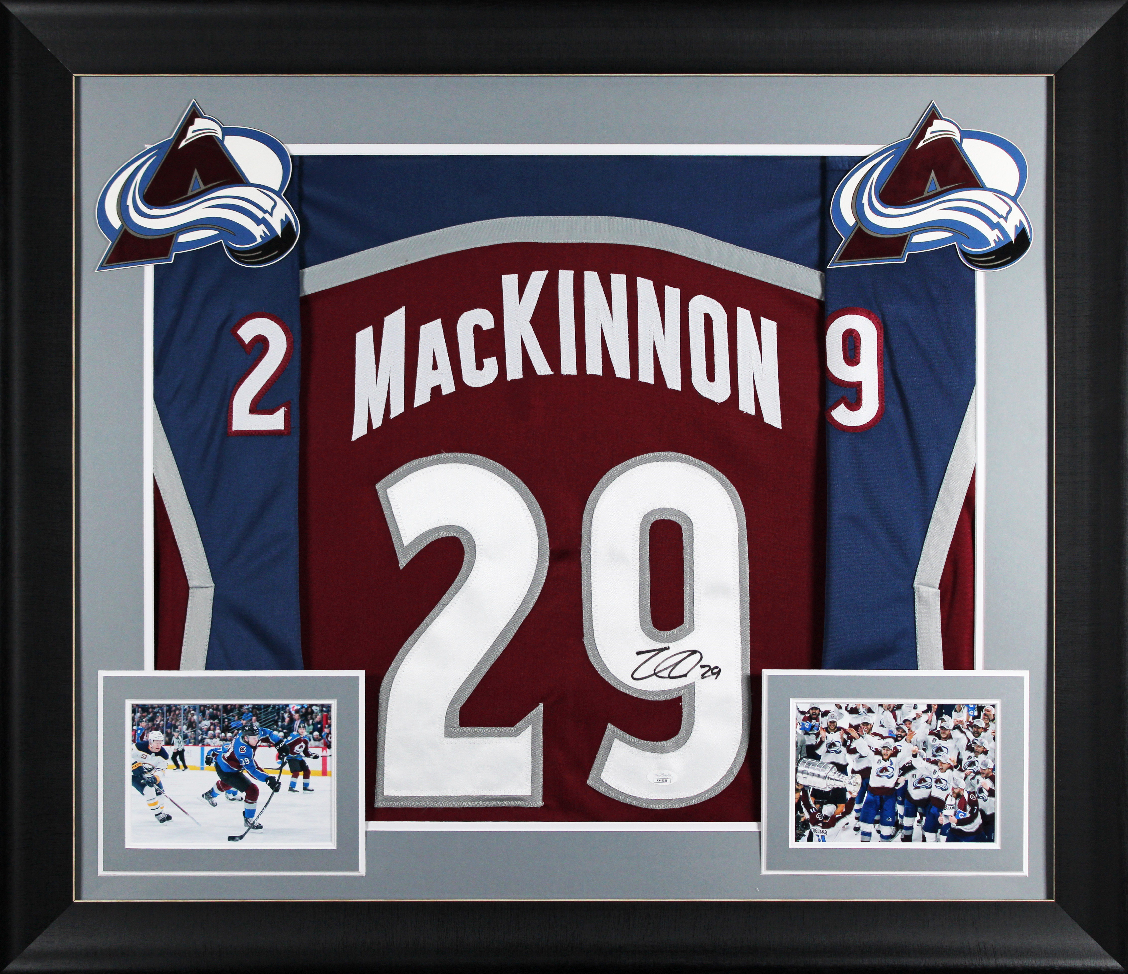 This Autographed Maroon Pro Style Framed Jersey has been Personally Signed by Nathan MacKinnon of the Colorado Avalanche. This item is 100% Authentic to include a Certificate of Authenticity (COA) / hologram by JSA. We have multiples of this same item. While the photographs are representative of this item, the size, placement and strength of the signature may vary. Each item is hand signed, therefore, each autograph is unique. This item has been professionally framed to overall dimensions of approximately 32 x 37 inches. This is a X-Large sized, non-branded, custom-stitched Framed Jersey. This jersey will be framed to order, it will take approximately 4-5 business days from purchase date for it to ship.