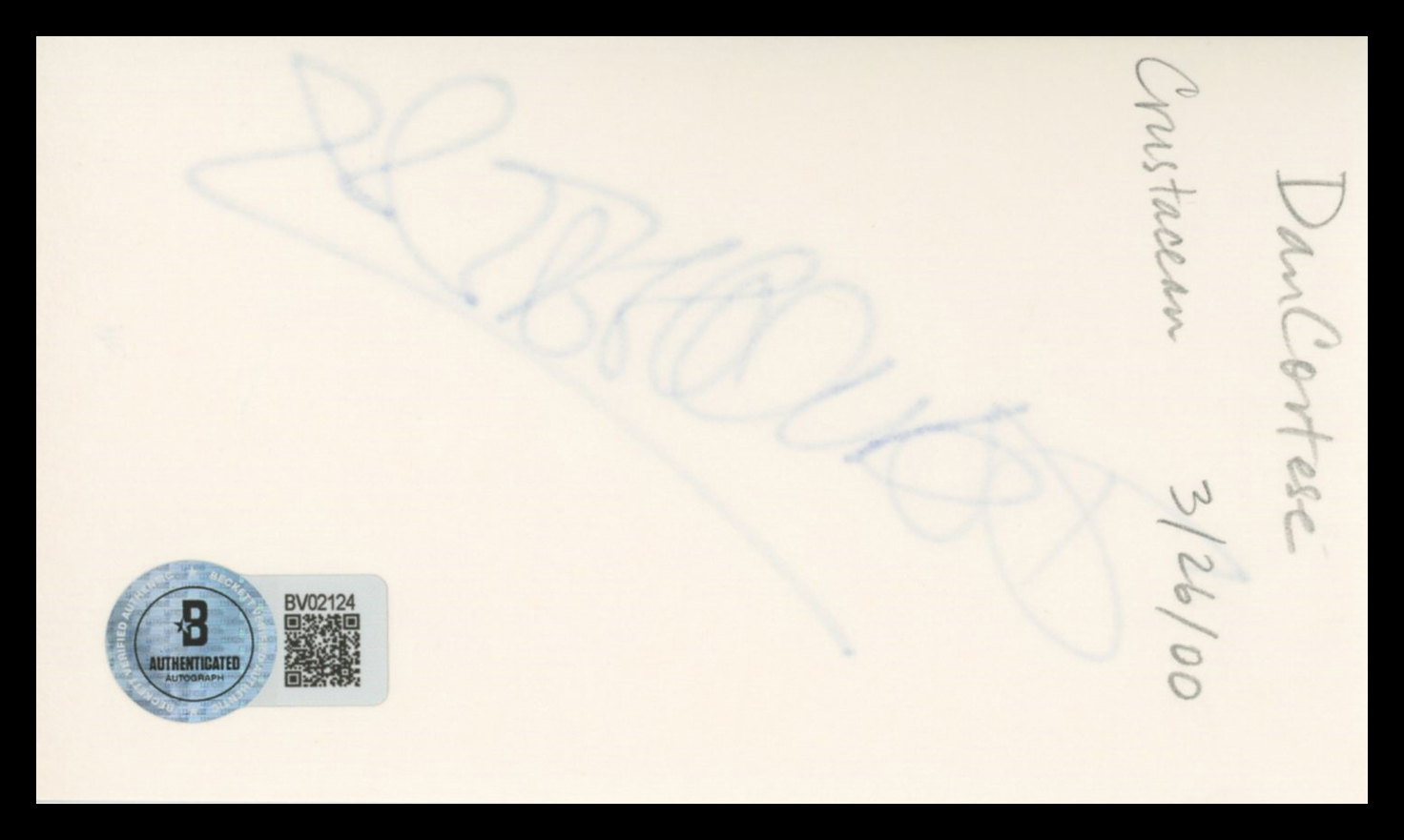 This Autographed 3x5 Index Card has been Personally Signed by Dan Cortese of Seinfeld. This item is 100% Authentic to include a hologram by Beckett Authentication Services. This item will come with an affixed Beckett Authentication Services (BAS) authentication sticker, which includes a scannable QR code to verify authenticity. Please note that Beckett no longer provides serial-numbered COA cards, and the attached BAS sticker will serve as the complete authentication for this item. The authenticity can be verified on Beckett Authentication Services website.
