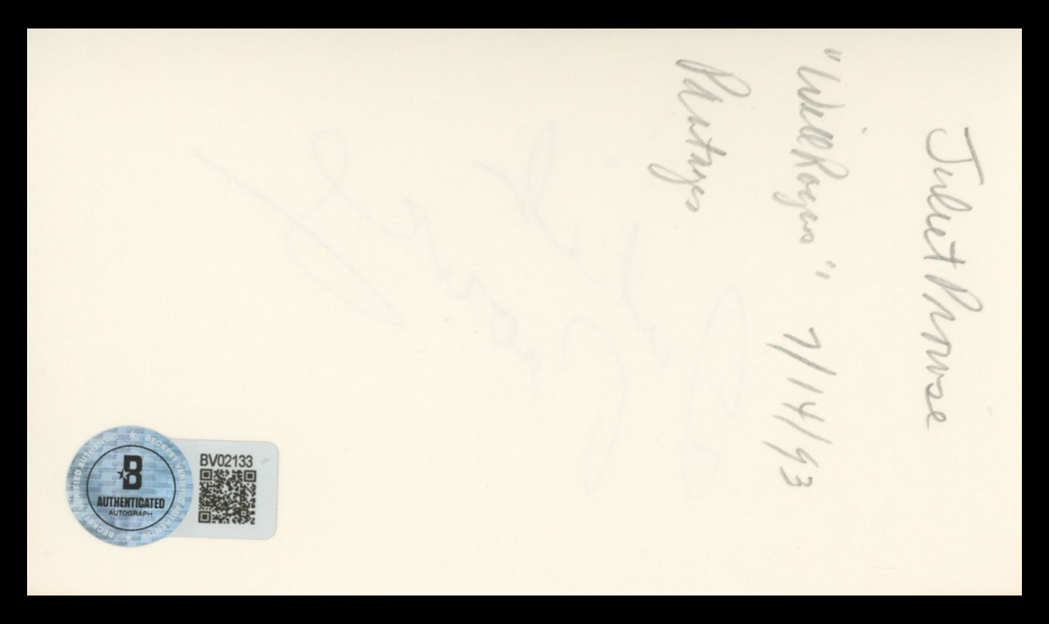 This Autographed 3x5 Index Card has been Personally Signed by Juliet Prowse of G.I. Blues. This item is 100% Authentic to include a hologram by Beckett Authentication Services. This item will come with an affixed Beckett Authentication Services (BAS) authentication sticker, which includes a scannable QR code to verify authenticity. Please note that Beckett no longer provides serial-numbered COA cards, and the attached BAS sticker will serve as the complete authentication for this item. The authenticity can be verified on Beckett Authentication Services website.