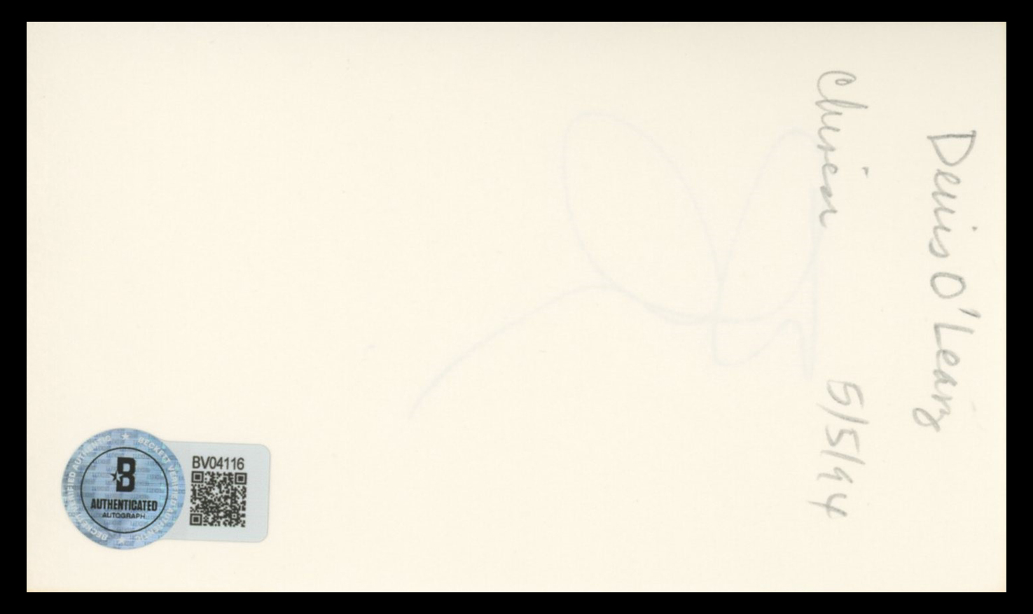 This Autographed 3x5 Index Card has been Personally Signed by Denis Leary of Rescue Me. This item is 100% Authentic to include a hologram by Beckett Authentication Services. This item will come with an affixed Beckett Authentication Services (BAS) authentication sticker, which includes a scannable QR code to verify authenticity. Please note that Beckett no longer provides serial-numbered COA cards, and the attached BAS sticker will serve as the complete authentication for this item. The authenticity can be verified on Beckett Authentication Services website.