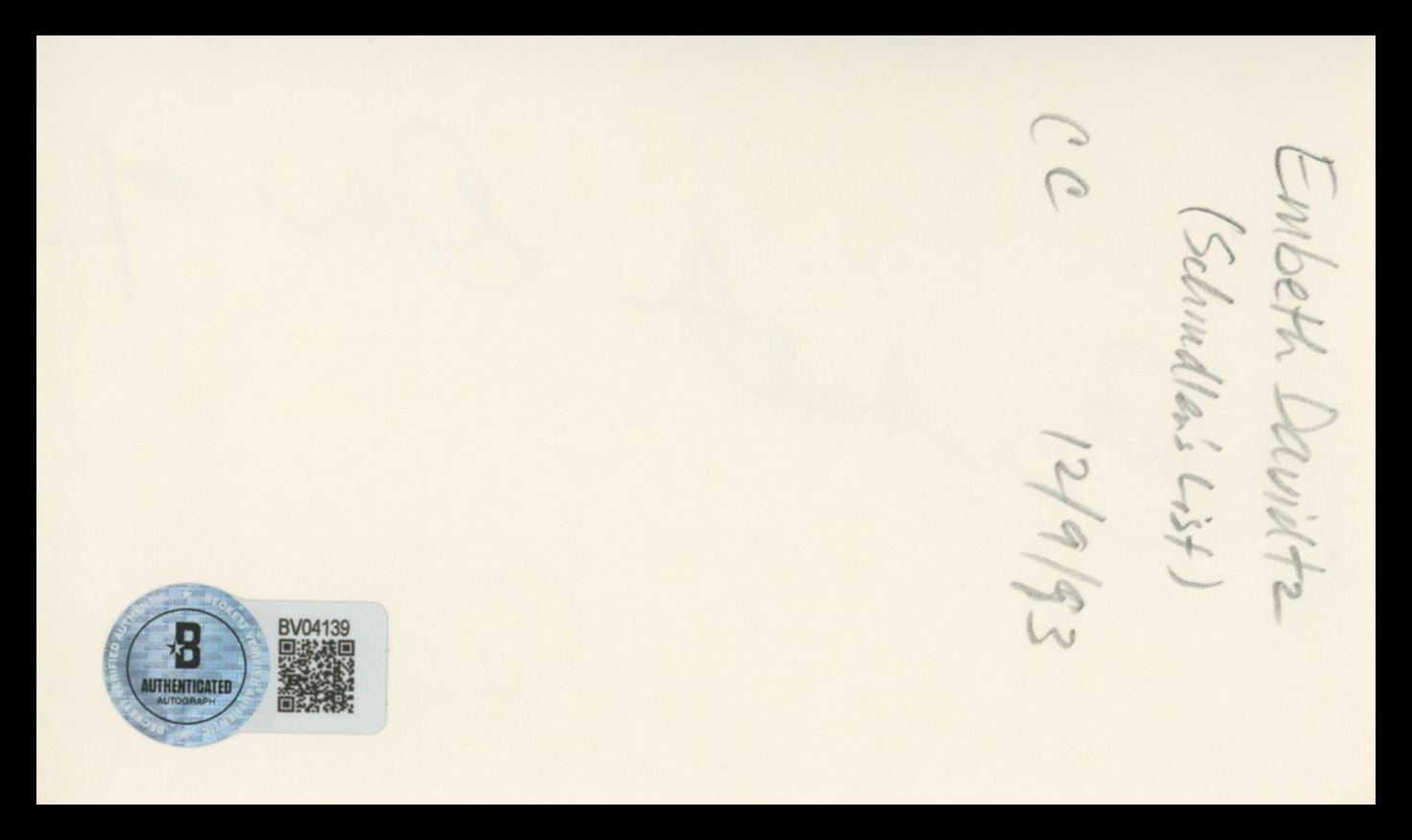 This Autographed 3x5 Index Card has been Personally Signed by Embeth Davidtz of Matilda. This item is 100% Authentic to include a hologram by Beckett Authentication Services. This item will come with an affixed Beckett Authentication Services (BAS) authentication sticker, which includes a scannable QR code to verify authenticity. Please note that Beckett no longer provides serial-numbered COA cards, and the attached BAS sticker will serve as the complete authentication for this item. The authenticity can be verified on Beckett Authentication Services website.