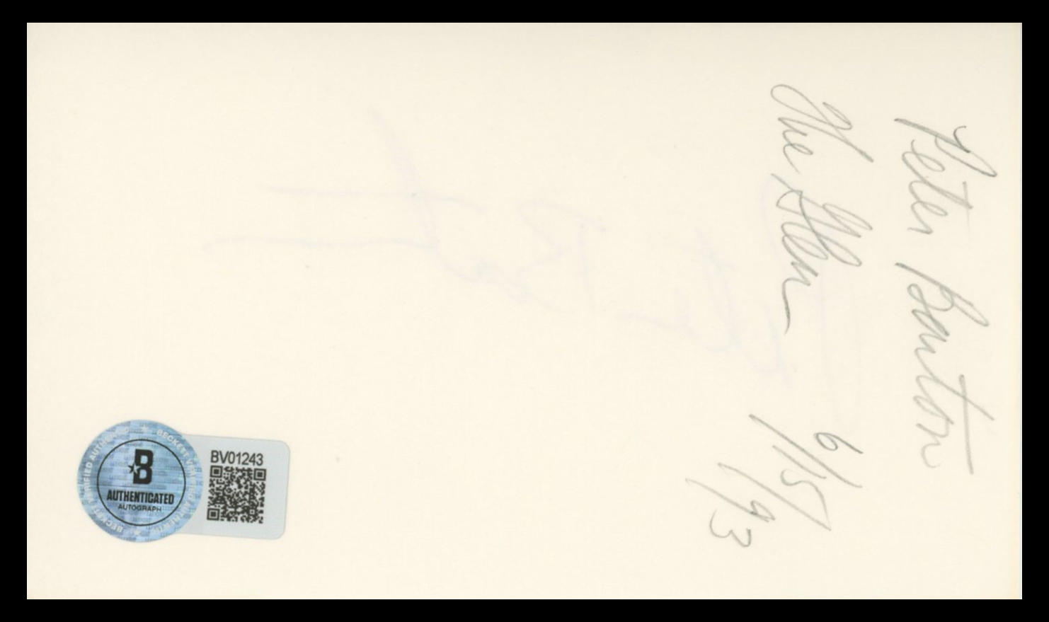 This Autographed 3x5 Index Card has been Personally Signed by Peter Barton of Friday the 13th The Final Chapter. This item is 100% Authentic to include a hologram by Beckett Authentication Services. This item will come with an affixed Beckett Authentication Services (BAS) authentication sticker, which includes a scannable QR code to verify authenticity. Please note that Beckett no longer provides serial-numbered COA cards, and the attached BAS sticker will serve as the complete authentication for this item. The authenticity can be verified on Beckett Authentication Services website.