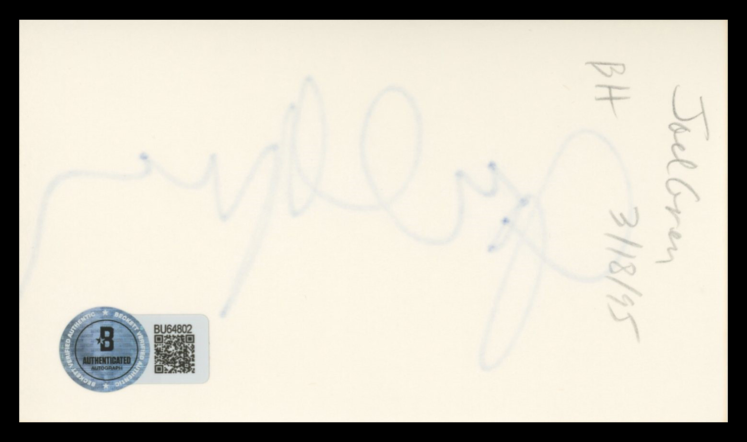 This Autographed 3x5 Index Card has been Personally Signed by Joel Grey of Cabaret. This item is 100% Authentic to include a hologram by Beckett Authentication Services. This item will come with an affixed Beckett Authentication Services (BAS) authentication sticker, which includes a scannable QR code to verify authenticity. Please note that Beckett no longer provides serial-numbered COA cards, and the attached BAS sticker will serve as the complete authentication for this item. The authenticity can be verified on Beckett Authentication Services website.