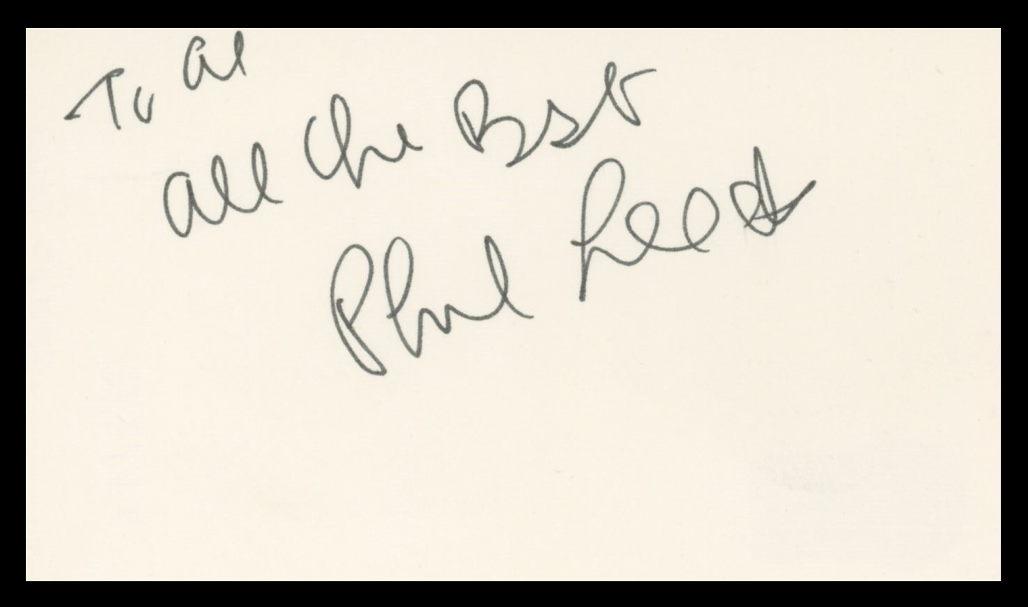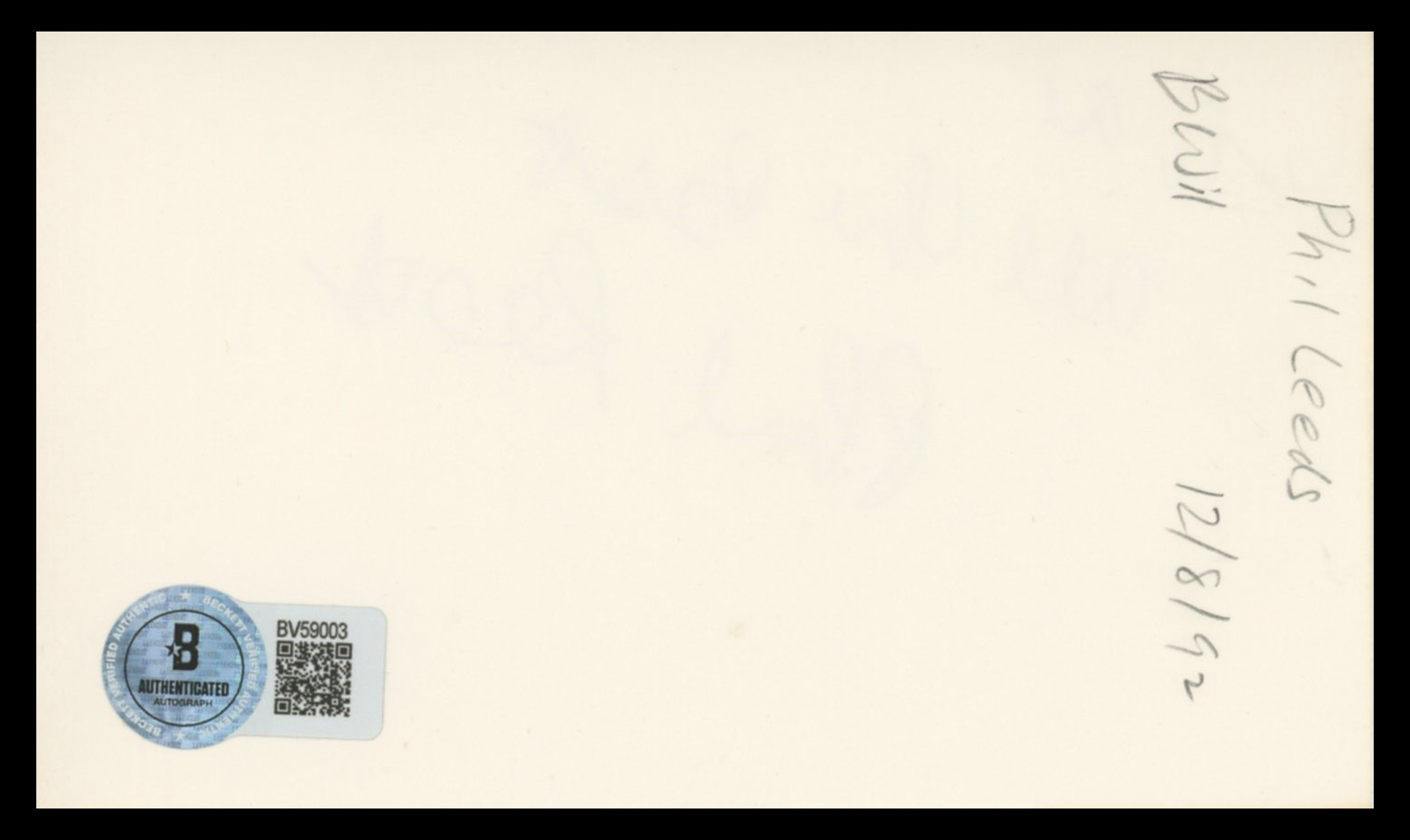 This Autographed 3x5 Index Card with the inscription of "To Al, all the best" has been Personally Signed by Phil Leeds of Everybody Loves Raymond. This item is 100% Authentic to include a hologram by Beckett Authentication Services. This item will come with an affixed Beckett Authentication Services (BAS) authentication sticker, which includes a scannable QR code to verify authenticity. Please note that Beckett no longer provides serial-numbered COA cards, and the attached BAS sticker will serve as the complete authentication for this item. The authenticity can be verified on Beckett Authentication Services website.