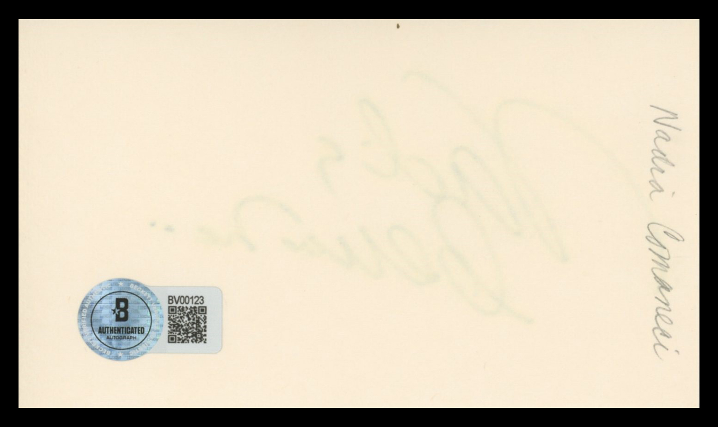 Nadia Comaneci Olympian Authentic Signed 3x5 Index Card Autographed BAS #BV00123