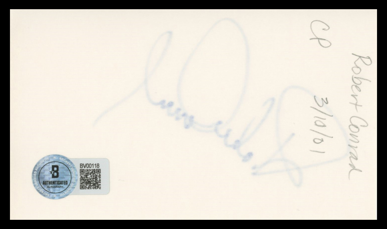 This Autographed 3x5 Index Card has been Personally Signed by Robert Conrad of The Wild Wild West. This item is 100% Authentic to include a hologram by Beckett Authentication Services. This item will come with an affixed Beckett Authentication Services (BAS) authentication sticker, which includes a scannable QR code to verify authenticity. Please note that Beckett no longer provides serial-numbered COA cards, and the attached BAS sticker will serve as the complete authentication for this item. The authenticity can be verified on Beckett Authentication Services website.