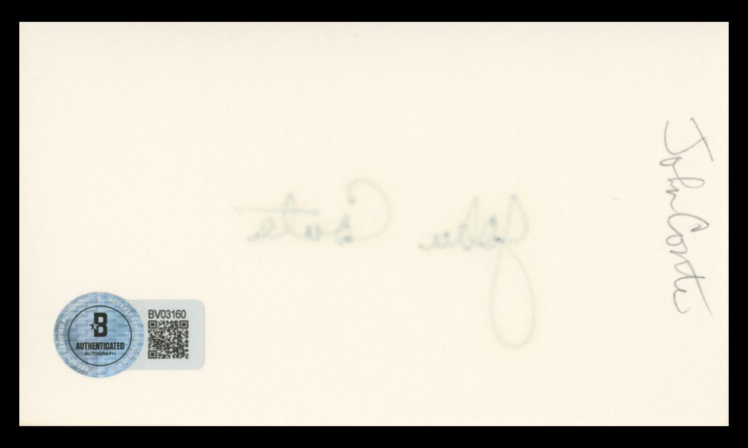 This Autographed 3x5 Index Card has been Personally Signed by John Conte of The Man with the Golden Arm. This item is 100% Authentic to include a hologram by Beckett Authentication Services. This item will come with an affixed Beckett Authentication Services (BAS) authentication sticker, which includes a scannable QR code to verify authenticity. Please note that Beckett no longer provides serial-numbered COA cards, and the attached BAS sticker will serve as the complete authentication for this item. The authenticity can be verified on Beckett Authentication Services website.