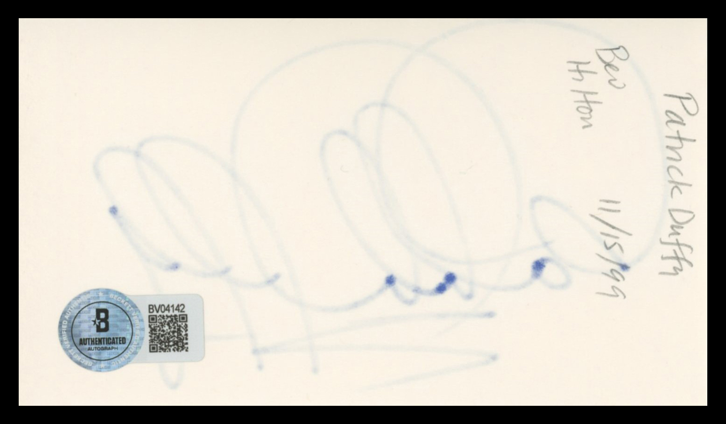 This Autographed 3x5 Index Card has been Personally Signed by Patrick Duffy of Dallas. This item is 100% Authentic to include a hologram by Beckett Authentication Services. This item will come with an affixed Beckett Authentication Services (BAS) authentication sticker, which includes a scannable QR code to verify authenticity. Please note that Beckett no longer provides serial-numbered COA cards, and the attached BAS sticker will serve as the complete authentication for this item. The authenticity can be verified on Beckett Authentication Services website.