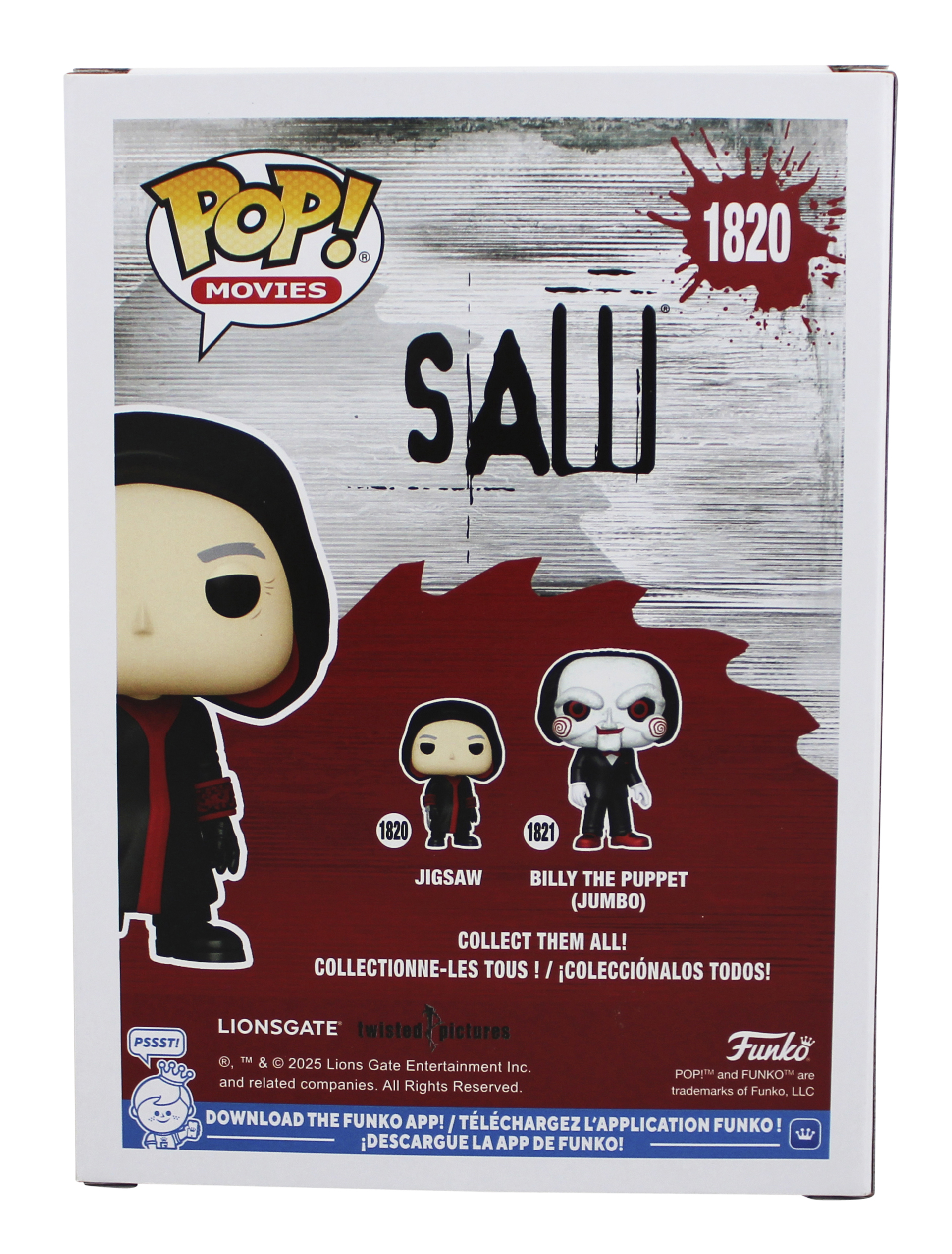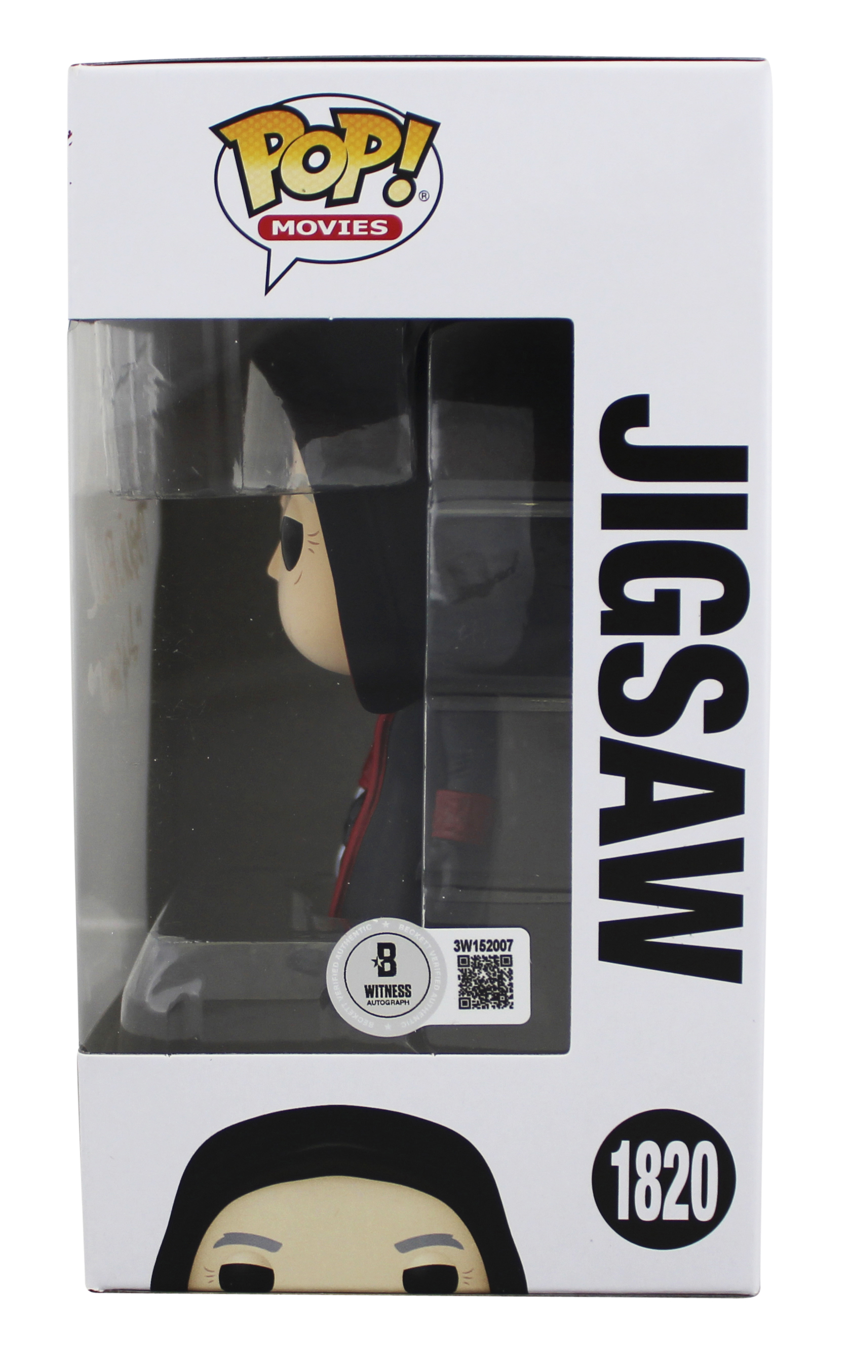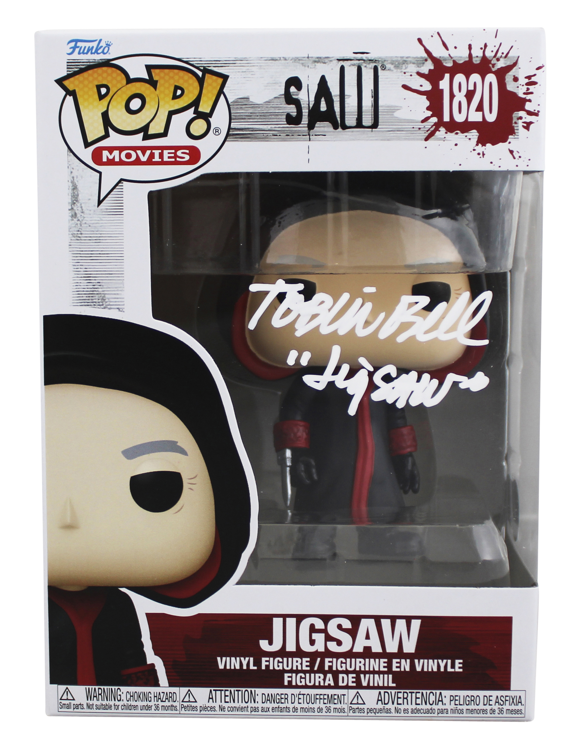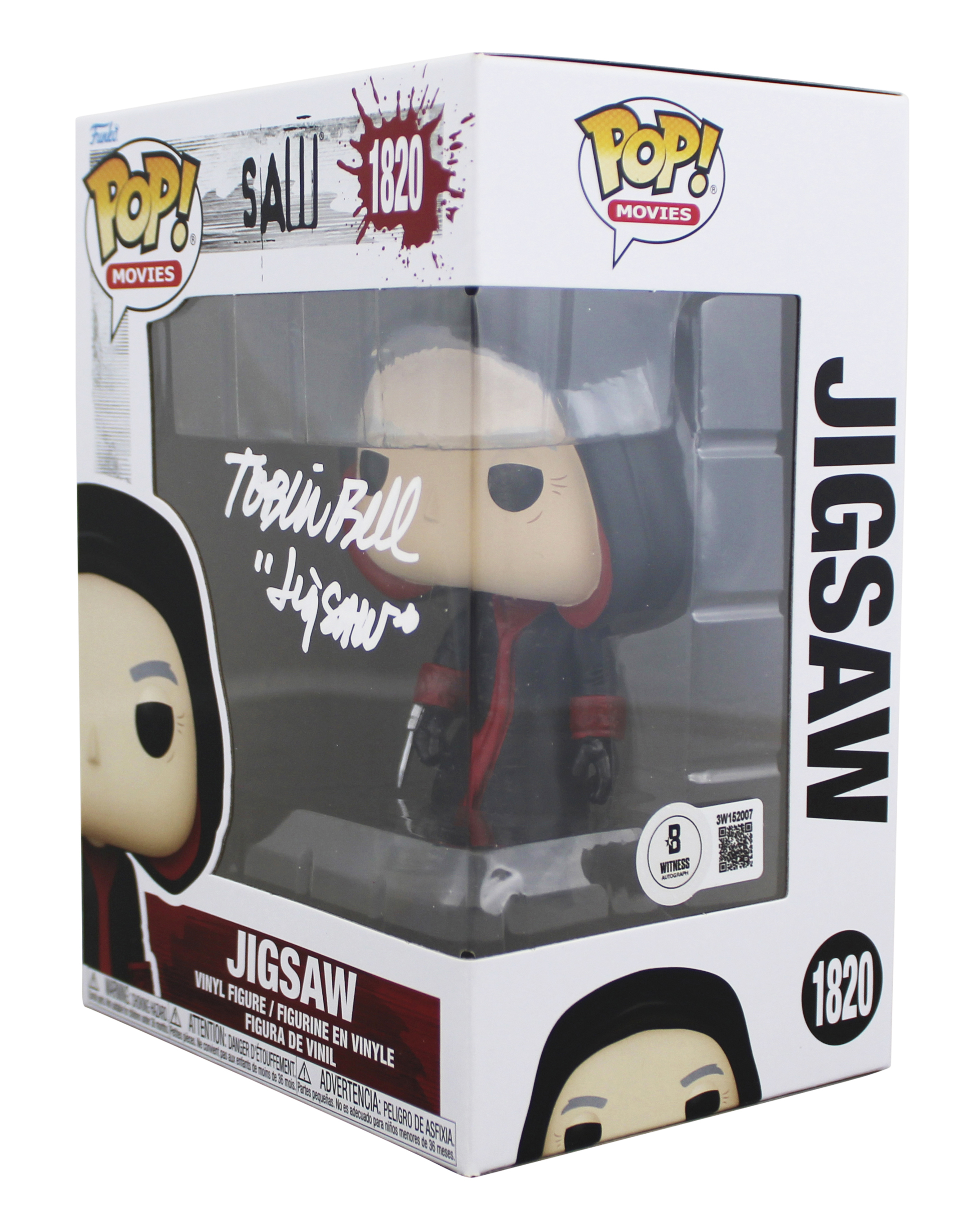 This Autographed W/ White Signature Jigsaw #1820 Funko Pop Vinyl Figure with the inscription of "Jigsaw" has been Personally Signed by Tobin Bell of Saw. This item is 100% Authentic to include a hologram by Beckett Authentication Services. This item will come with an affixed Beckett Authentication Services (BAS) authentication sticker, which includes a scannable QR code to verify authenticity. Please note that Beckett no longer provides serial-numbered COA cards, and the attached BAS sticker will serve as the complete authentication for this item. This is a BAS Witnessed Protection Program item which means a Beckett Authentication Service representative was present when this item was being signed. We have multiples of this same item. While the photographs are representative of this item, the size, placement and strength of the signature may vary. Each item is hand signed, therefore, each autograph is unique. This item will ship in a Pop! Protector, please refer to the photos for condition of the item prior to purchase, these are in good condition but would not be considered mint.